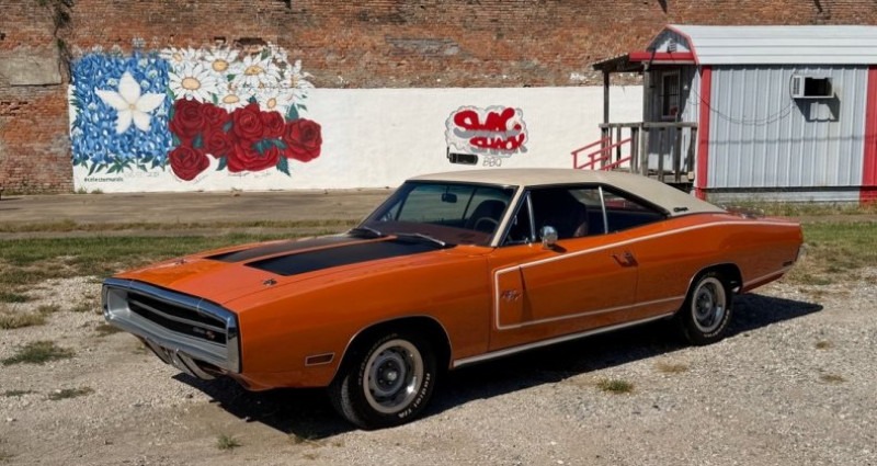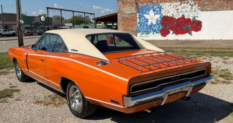 - Marque : Dodge - Modèle : Charger RT - Année : 1970 - Numéro d'inventaire : 19207 - Couleur extérieure : Orange - Couleur intérieure : Orange - Transmission : 3 vitesses automatique - Moteur : 440 Magnum V8 - Kilométrage : 0 - Options : climatisation, freinage assisté, direction assistée, fenêtres électriques, régulateur de vitesse, système audio 8 pistes, couverture vitrée blanche, bande longitudinale, porte-bagages, siège conducteur réglable à 6 voies - Lieu : Celeste, TX 75423 - Contact : Tony @ 505-503-3274. Provenance : Texas. Disponibilité : environ 7 semaines, clés en main. 98 500 € tout compris (importation, taxes, procédure d'immatriculation). Annonce publiée le 23/12/2025