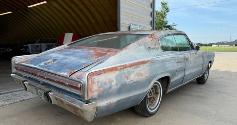 - Marque : Dodge - Modèle : Charger - Année : 1967 - Stock : 9153 - Couleur extérieure : Bleu - Couleur intérieure : Blanc - Transmission : 3 vitesses automatique - Moteur : 440 Magnum V8 - Kilométrage : 0 - Couleur carrosserie (code factory) : 881 - Intérieur optionnel : fenêtres électriques - Moteur : C440 HP '67 440 court - VIN, étiquettes de carrosserie et marques de carrosserie sont intacts - Travaux nécessaires : seulement des travaux mineurs de métal - Trim et intérieur : majoritairement présents - Titre propre - Caractéristiques : première Charger construite avec un 440 - Boîte de vitesses : 727 automatique à changement au sol - Localisation : Celeste, TX 75423 - Contact : Tony @ 505-503-3274. Provenance : Texas. Disponibilité : environ 7 semaines, clés en main. 28 500 € tout compris (importation, taxes, procédure d'immatriculation). Annonce publiée le 30/12/2025