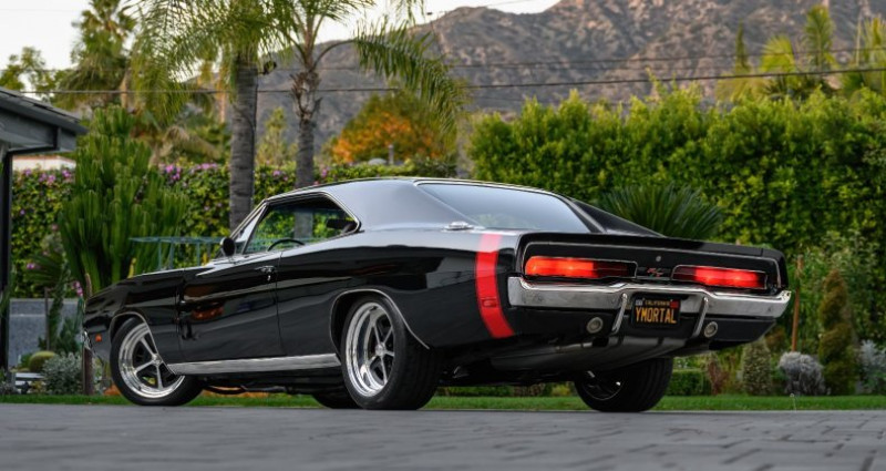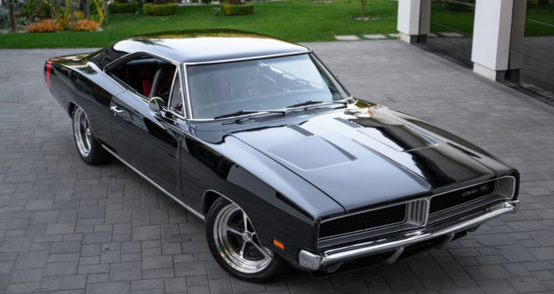 - Année : 1969 - Modèle : Dodge Charger R/T - Moteur : 440 cubic inch, numéro de série correspondant, reconstruit avec un vile camshaft, accessoires moteur neufs - Boîte de vitesses : T5 5-vitesse manuelle, levier de vitesses en aluminium billet, manette en aluminium billet - Boîte de vitesses arrière : reconstruite avec 292 gears, pour une conduite confortable sur autoroute - Suspension/châssis/freins : torsions barres nouvelles, amortisseurs Hotchkis, barre anti-roulis Hotchkis, freins à disque convertis en puissance, système de suspension coilover QA1 non installé (en boîte inédite) - Pneus : Billet Specialties 18, 18x8 avant, 18x10 arrière, pneus Firestone Indy500 235/45/18 avant, 275/40/18 arrière - Peinture : noir, avec une bande rouge abeille - Équipement supplémentaire : vents supplémentaires, ventilation A/C Vintage Air, système audio Kenwood Bluetooth, console centrale personnalisée, sièges Corbeau en cuir noir avec bande rouge centrale, sièges en cuir noir avec logo Dodge brodé, bande de sol personnalisée Charger, commandes de radio Bluetooth, système de son amélioré avec 6x9 speakers et LED lighting dans le coffre - Kilométrage : environ 4 000 miles depuis la restauration. Provenance : California. Disponibilité : environ 7 semaines, clés en main. 119 500 € tout compris (importation, taxes, procédure d'immatriculation). Annonce publiée le 31/12/2025