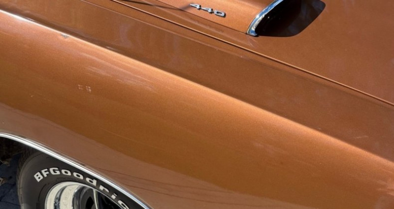 Ce 1969 Dodge Coronet R/T 440 est un véhicule d'origine, avec correspondance numérique complète et en état de survivant. Il est muni d'un puissant moteur de 440 ch associé à un ensemble d'axe de performance 727 avec une rapport de transmission de 3, 55. Les panneaux de carrosserie, l'intérieur, le toit en vinyle et près de 85% de la peinture lacquer d'origine sont intacts. Le véhicule est accompagné de la plaque d'origine et de clés. Il a appartenu au même propriétaire pendant quinze ans et roule tranquillement. Sa documentation comprend une histoire de course à l'Indianapolis Indiana Speedway. L'exhaustif dossier de documentation comprend également le numéro de la plaque d'origine, des photos de la carrosserie, des photos des options et un tableau détaillé de la plaque de fender. La carrosserie est équipée d'un système audio à trois haut-parleurs avec défroisseur de fenêtre arrière. Malheureusement, le tableau de bord ne possède plus de radio AM. La carrosserie a été rénovée dans les années 80 par le deuxième propriétaire pour supprimer des dommages de rouille mineurs sur la panneau arrière gauche et sur les pare-chocs arrière. La carrosserie conserve l'emblème original de la queue de voiture. Le Coronet est équipé d'une double sortie d'échappement unique dans sa vie. Les amortisseurs originaux ont été remplacés par des amortisseurs KYB et la cylindrée du réservoir de frein a été remplacée. Le véhicule a été acquis avec 37 117 miles sur l'odomètre et en a maintenant 41 579 miles. Il a été stocké dans un environnement climatisé la plupart du temps de sa vie, et cela s'y ressent vivement.. Ce descriptif est basé sur les éléments communiqués par le propriétaire avec un traitement assisté. Merci pour votre indulgence en cas de formulation perfectible. Provenance : New York. Disponibilité : 7 semaines, clés en main. 63 000 € tout compris (importation, taxes, procédure d'immatriculation). Annonce publiée le 08/10/2025