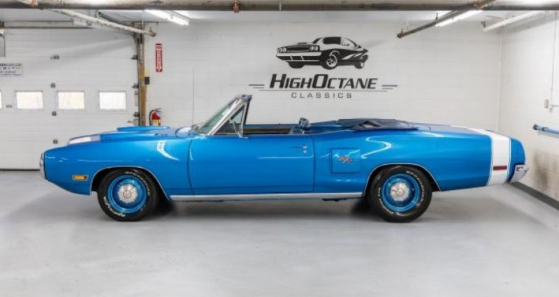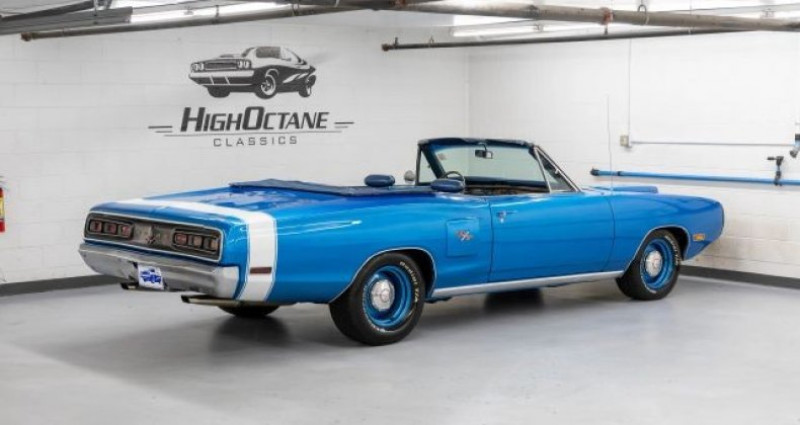 Ce 1970 Dodge Coronet 500 propose par High Octane Classics est muni d'une carrosserie métallisé bleu avec intérieur en vinyl bleu. Le moteur est un 440 Six Pack V8 associé à une boîte de vitesses manuelle à pédalier pistolet et transmission intégrale arrière. Cette Coronet a bénéficié du traitement R/T avec des emblèmes à l'avant, à l'arrière et sur les côtés. Elle est équipée de systèmes de freinage et de direction électriques, ainsi que d'un système d'admission Ramcharger avec flapettes opérées par câble. L'intérieur présente la boisée typique de la série 500, un tableau de bord à compteur de vitesse, un siège banc et le fameux pédalier pistolet. Elle roule sur une jante chromée de 15 pouces avec des pneus BF Goodrich Radials de 235/60 à l'avant et 275/60 à l'arrière. Cette Coronet possède toutes les caractéristiques qui font de Mopar un grand modèle : couleur vive, moteur de 440 chevaux, pédalier pistolet manuel, jantes chromées compatibles avec la carrosserie, et un design unique de 1970. Pour plus d'informations, contactez Dan à 866-719-5669. Chaque véhicule de notre magnifique stock est sélectionné et inspecté avec aucune exception. Les peintures brillantes et les moteurs soigneusement nettoyés ne sont pas toujours synonymes de véhicule de qualité. Notre fantastique service et notre équipe en font chaque jour possible ici à High Octane Classics. Nous cherchons à livrer un produit de qualité et une expérience inoubliable. Achetez votre véhicule de rêve aujourd'hui et rejoignez la famille High Octane Classics ! Nous avons des options de financement disponibles allant jusqu'à 144 mois. Nous offrons également des options de transport mondial.. Ce descriptif est basé sur les éléments communiqués par le propriétaire avec un traitement assisté. Merci pour votre indulgence en cas de formulation perfectible. Provenance : Massachusetts. Disponibilité : 7 semaines, clés en main. 77 500 € tout compris (importation, taxes, procédure d'immatriculation). Annonce publiée le 06/11/2025