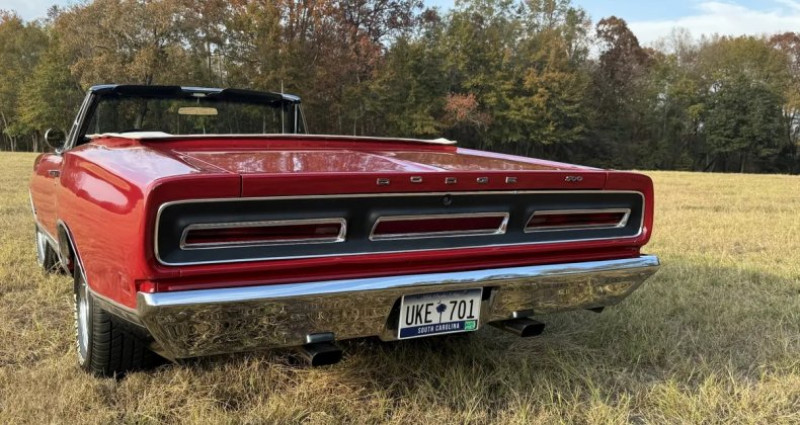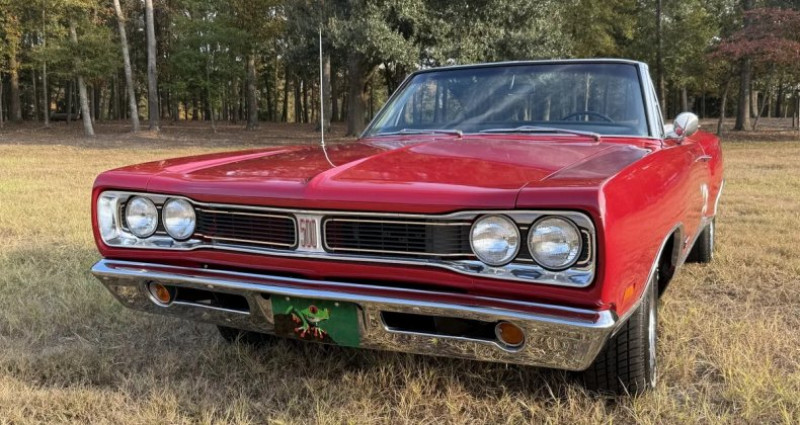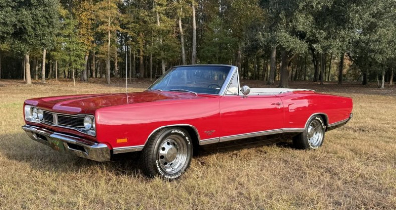 1969 Dodge Coronet 500 convertible, 383 V8, automatic, numbers-matching, original drivetrain components, long body lines, wide stance, classic B-body proportions, runs and drives great, old paint, few nicks, front end rebuilt, top works perfectly, rare car, several hundred produced with few survivors, rarely seen for sale, trim complete, fender tag confirming pedigree, color combination and factory options, desirable convertible top, sharp interior, premium 500-series trim, well-preserved survivor, father and daughter owners since 1996.. Provenance : SC, USA. Disponibilité : environ 7 semaines, clés en main. 59 000 € tout compris (import, taxes, procédure d'immatriculation). Annonce publiée le 25/11/2025