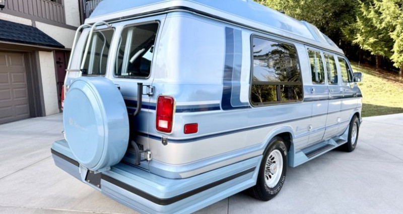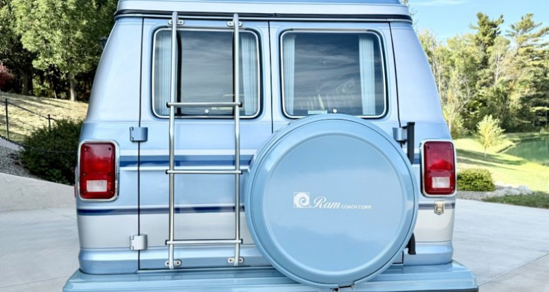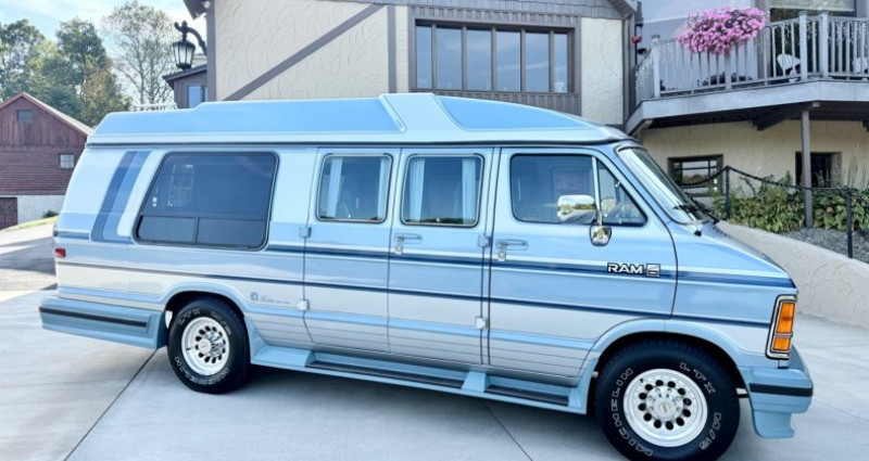 1988 Dodge RAM B350 Maxivan Conversion Van by Ram Coach Corp, Medium & Navy Blue, Silver Metallic with Blue Flexsteel Cloth Seats, 5.9L V8 Engine with 3-speed Manual Transmission, Original, Garage Kept, Never Been in an Accident, Clean Carfax, Extended Model, Power Rear Sofa Bed, Rear Captain Chairs Swivel to Rear Sofa, Molded Lower Trim with Running Boards, Flexsteel Front and Rear Captain Chairs, Wood Interior Accents with Ambient Lighting, Front Spoiler with Amber Fog Lights, 16 American Racing Polished Wheels with Michelin LTX Tires, Chrome Rear Ladder, Rear Spare Tire with Painted to Match Fiberglass Cover, Power Windows and Locks, 16 American Racing Polished Wheels with Michelin LTX Tires, Chrome Rear Ladder, Rear Spare Tire with Painted to Match Fiberglass Cover, Wood Interior Accents with Ambient Lighting, Front Spoiler with Amber Fog Lights. Ram Coach Corp documentation included. Based in Elkhart, Indiana.. Provenance : New York. Disponibilité : environ 7 semaines, clés en main. 43 000 € tout compris (importation, taxes, procédure d'immatriculation). Annonce publiée le 24/11/2025
