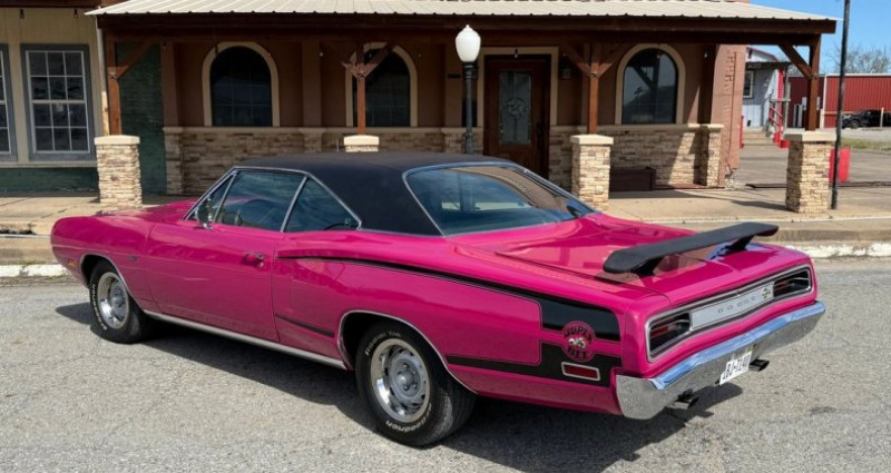 Voici une description d'un Dodge Superbee de 1970, en vente avec un numéro d'identification 8175, de couleur extérieure rose et intérieure noire. Cette voiture a bénéficié d'une restauration rotisserie, réalisée en conformité avec les spécifications originales et comprend une peinture et une carrosserie à la quasi parfaite, avec un intérieur exceptionnellement bien conservé. Le moteur est un 383 Magnum avec un carburateur à 4 barres, avec une transmission automatique 727 console, orientée. Elle est équipée d'une bande noire C et d'une toiture en vinyle, de sièges baquet, d'un console, de climatisation, de direction assistée et de freins avant puissants. Le numéro de la planche de bord est intacte, le code du châssis et la transmission sont conformes à la date et sont préfixés avec 0B. La voiture est en bon état de fonctionnement et prête à rouler. Le véhicule comprend également un pneu d'épargne avec des Polyglas et un ensemble de jack. La voiture a un titre propre et se trouve à Celeste, TX 75423. Le vendeur peut être contacté à 866-332-9645.. Ce descriptif est basé sur les éléments communiqués par le propriétaire avec un traitement assisté. Merci pour votre indulgence en cas de formulation perfectible. Provenance : Texas. Disponibilité : 7 semaines, clés en main. 127 000 € tout compris (importation, taxes, procédure d'immatriculation). Annonce publiée le 12/11/2025
