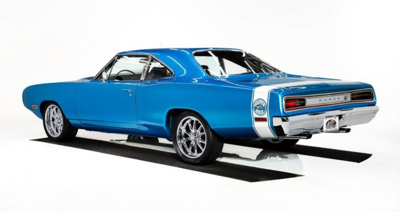 - Six pack carbs - Bucket seats - Center console - Pistol grip shifter - Rallye gauges - Embroidered mats - Am-Fm radio - Hood scoop - Rallye wheels - Bumblebee stripe - Dual exhaust - 440 cubic inch engine - New 18 inch US Mag wheels - Refinished front grill - Replaced headliner, dash pad, door panels, seats, and carpeting - Functioning hood scoops - Slickly painted trunk lid and jamb - Reproduction sticker (trunk compartment) - Weather stripping replacement (trunk compartment) - Solid and painted body color trunk pan metal - Full-size spare tire and jack assembly - Detailed rotisserie restoration - Rebuilt steering system - Rebuilt and upgraded suspension with Gas-a-Just shocks - Hooked up emergency brake - Upgraded exhaust system with cross over pipe and dual Dynomax mufflers - Replaced gas tank and lines - VIN # matching 4-speed manual transmission - Solid and rust free floorboards - Body colored paint on underside of hood, fender wells, and firewall - Museum display (source text mentions, but no specific information given about this). Provenance : , USA. Disponibilité : environ 7 semaines, clés en main. 97 500 € tout compris (import, taxes, procédure d'immatriculation). Annonce publiée le 02/12/2025