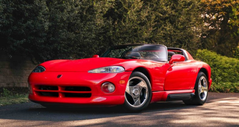 1993 Dodge Viper R/T, Viper Red exterior, Gray leather interior, 11, 9xx miles, one-owner history, Carfax clean, recent servicing with new spark plugs, oil & filter change, brake flush, air filters, new tires, custom Alcantara-refinished dash, professionally painted and detailed exterior, factory literature, original window sticker, Viper memorabilia, first-generation Viper. Provenance : Pennsylvania. Disponibilité : environ 7 semaines, clés en main. 59 000 € tout compris (importation, taxes, procédure d'immatriculation). Annonce publiée le 25/11/2025