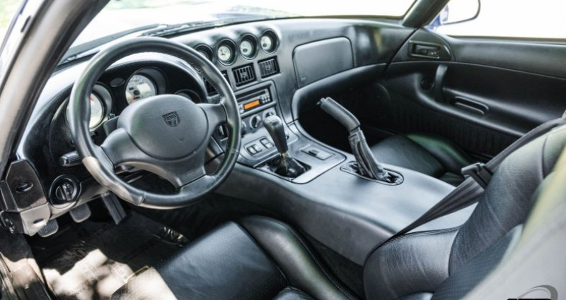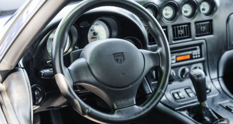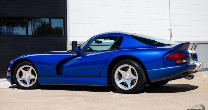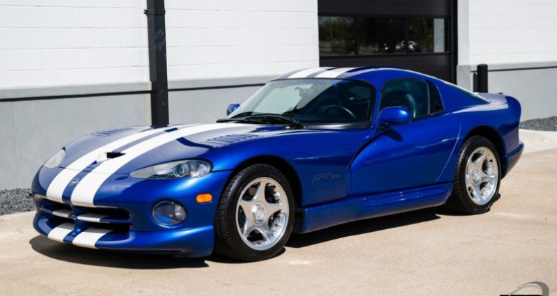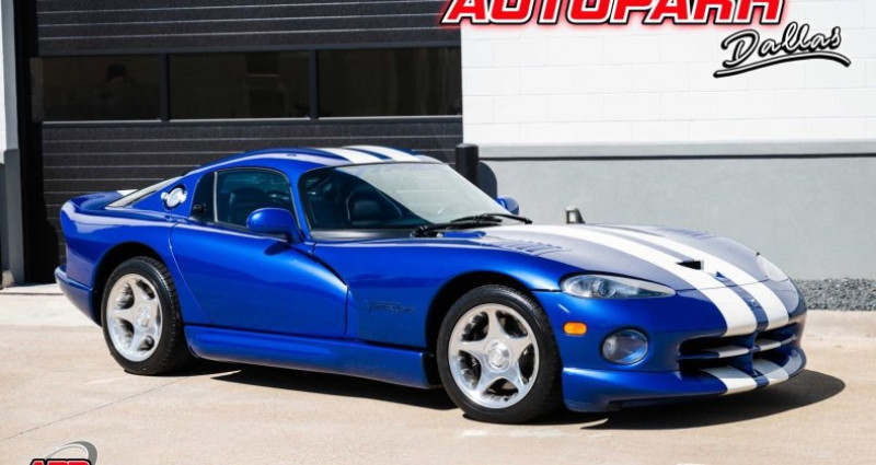 1996 Dodge Viper GTS • Viper Blue Pearl Metallic • Black Leather • 8.0L NA V10 overhead valves (OHV) 20V • 6-Speed Manual • Rear Wheel Drive • 11, 546 miles • Viper Blue with White Stripes exterior • Black Leather interior • Polished Alloy Wheels • Power Windows • Air Conditioning • AM/FM Cassette Stereo • Factory Side Exit Exhaust. Provenance : Texas. Disponibilité : environ 7 semaines, clés en main. 91 500 € tout compris (importation, taxes, procédure d'immatriculation). Annonce publiée le 24/11/2025