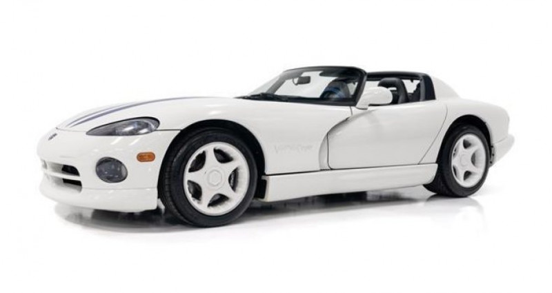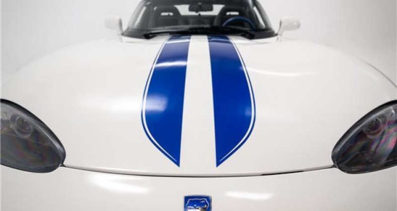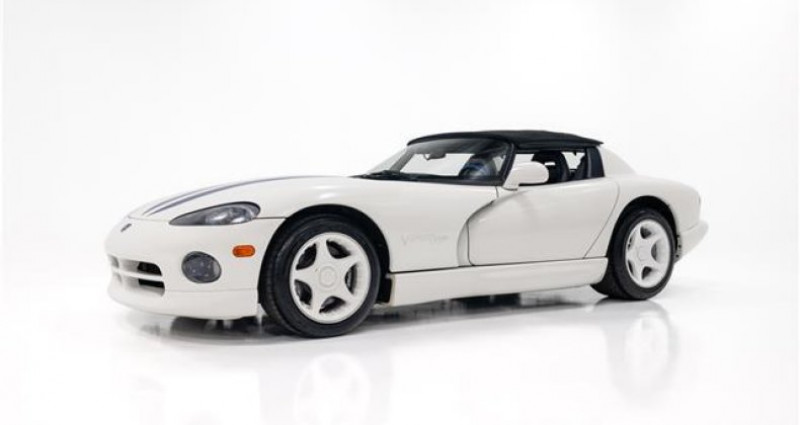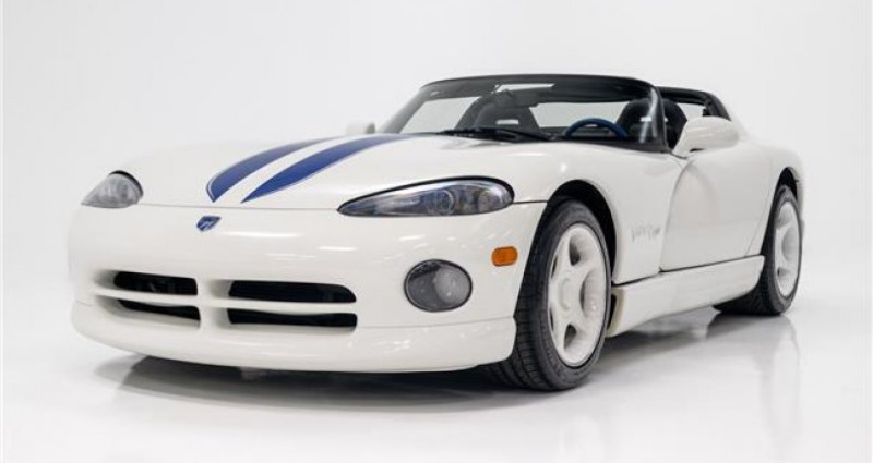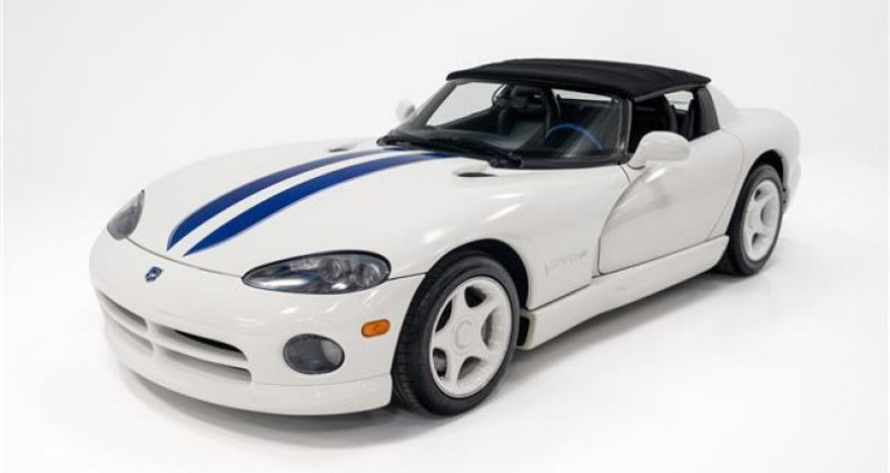 - Marque : Dodge - Modèle : Viper RT/10 - Année : 1996 - Couleur : Blanc avec bandes bleues sur intérieur noir - Moteur : 8.0 L V10 - Boîte de vitesses : 6-vitesse manuelle Tremec T-56 - Kilométrage : 12 775 miles - Équipements : roues 17 pouces blancs, différentiel à verrouillage limité, toit souple et fenêtres latérales, sièges en cuir avec accents bleus sur volant, levier de vitesse et frein à main, jauges blanches sportives - État : bien entretenu, 12 000 miles d'origine - VIN : 1B3BR65E2TV100289. Provenance : Missouri. Disponibilité : environ 7 semaines, clés en main. 64 500 € tout compris (importation, taxes, procédure d'immatriculation). Annonce publiée le 10/12/2025