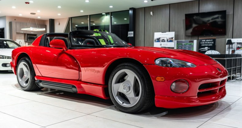 - Marque : Dodge - Modèle : Viper RT/10 - Année : 1993 - Type de carrosserie : Cabriolet - Couleur extérieure : Rouge - Couleur intérieure : Noir et Quartz - Moteur : 8.0L NA V10 overhead valves (OHV) 20V - Boîte de vitesses : 6 vitesses manuelle - Kilométrage : 2 748 miles (environ 4 414 km) - Transmission : Rear Wheel Drive - Équipements notables : Climatisation, radio HD, système audio, système d'échappement sportif, capot avant ventilé, toit mousse en tissu retirable, suspensions sportives, rétroviseurs extérieurs réglables, échappement double sortie arrière, etc.. Provenance : Illinois. Disponibilité : environ 7 semaines, clés en main. 70 500 € tout compris (importation, taxes, procédure d'immatriculation). Annonce publiée le 22/12/2025