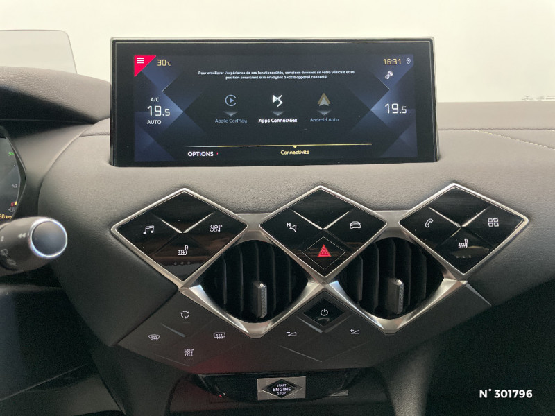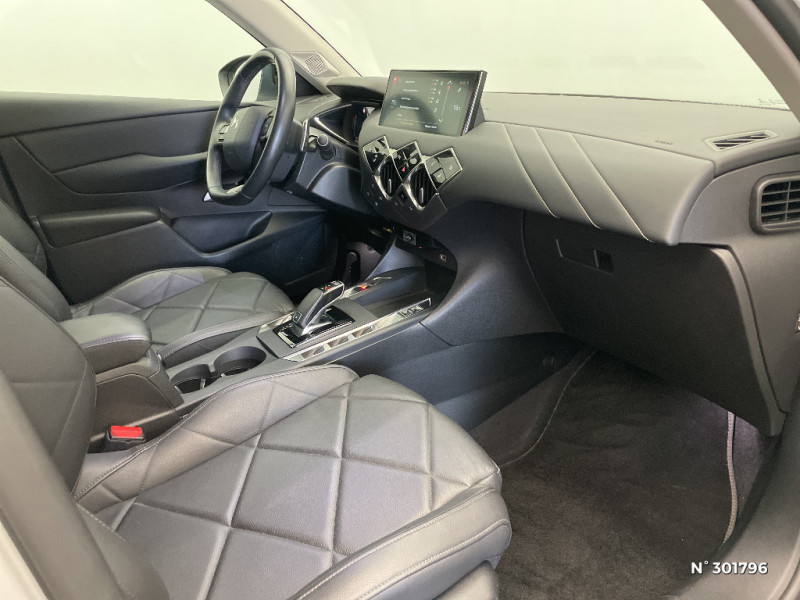 ADML PROXIMITY Accès et démarrage Mains-Libres ave déverrouillage et déploiement automatique des poignées de portes affleurantes à l'approche du véhicule / ADML PROXIMITY avec DS CONNECT BOX / Airbags frontaux aux places AV avec désactivation par clé de l'airbag passager / Airbags latéraux de type "thorax" aux places AV et AR / Alerte de survitesse / Allumage automatique des feux de détresse en cas de forte décélération / Antenne radio invisible / Aumônières de dos sur les sièges AV / Banquette AR 2/3 - 1/3 avec 3 appuie-tête / Centre de roue Noir / Chargeur sans fil / Clignotants impulsionnels 3 coups / Contrôle de traction intelligent / Contrôle dynamique de stabilité (ESP) avec antipatinage des roues (ASR) / Crochet d'arrimage dans le coffre / Crochet d'arrimage dans le coffre au dessus du plancher de coffre x4 / Démarrage Mains-Libres avec bouton de démarrage à pulsation / Détection de sous-gonflage / Double canule d'échappement chromée / DS Connect Box / DS CONNECT NAV avec Mirror Screen et radio numérique / DS Wings chromées / Eclairage d'accompagnement / Eclairage d'accueil automatique / Eclairage de boîte à gants, d'accoudoir central AV et de coffre à LED / Eclairage de plaque de police à LED / Eclaireur de coffre / Essuie-vitre AR avec intermittence indexée à la marche AR / Essuie-vitre AV à déclenchement et cadencement automatiques / Facade centrale a commandes sensitives / Feux AR halogène / Feux STOP à LED (3e feu) / Filtre à charbon actif / Fixations ISOFIX à la place passager AV et aux places latérales AR / Frein de stationnement électrique / Freinage d'urgence automatique jusqu'à 85 km/h / Grille de calandre Noir Mat / Grille de calandre Noir Mat avec pointes Chromées / Guide utilisateur numérique / Indicateur de rapports engagés / Inspiration DS RIVOLI / Lève-vitres AV/AR électriques, séquentiels et antipincement / Mirror Screen / Navigation avec Mirror Screen et radio numérique / Pare-brise teinté et acoustique / Pare-soleil avec miroir de courtoisie et éclairage à LED / Pieds de rétroviseurs extérieurs couleur carrosserie / Plafonnier tactile à LED, liseuses AR à LED, éclairage de cave à pieds à LED / Poignées de maintien aux places AR / Poignées de maintien aux places AV / Poignées de portes affleurantes / Poignées de portes affleurantes ouverture à l'approche / Poignées d'ouverture de portes intérieures Chromées / Porte-gobelets à l' AV / Portières avec lécheurs de vitres invisibles / Prise USB Data à l'AV / Radio analogique / ABS, AFU, ESP, REF / Reconnaissance vocale / Réhausse manuelle de siège conducteur / Rehausse manuelle du siège passager / Rétroviseur intérieur simple / Seuils de portes AV en métal chromé / Sièges AV à haute densité / Sièges AV réglables en longueur / SOS & Assistance / Surtapis épais AV et AR / Système audio sur tablette tactile 10,3" HD à 8 HP avec prise USB et Bluetooth / Système sonore polyphonique / Système sonore polyphonique à 8 HP / Témoin et alerte sonore de non-bouclage des ceintures de sécurité AV/AR / Verrou sur porte conducteur / Verrouillage automatique des portes en roulant / Zone De Danger / Inspiration DS BASTILLE avec sièges Cuir et pavillon clair / Inspiration DS RIVOLI / Combiné numérique