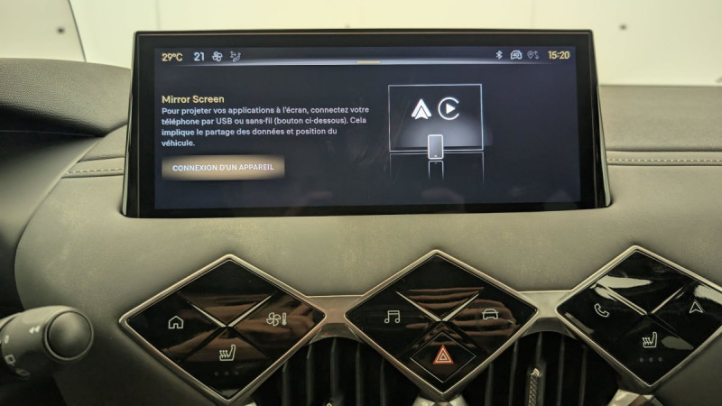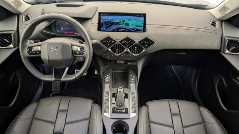 ABS, AFU, ESP, REF / Pédalier en aluminium / Double canule d'échappement chromée / Prise USB Data à l'AV / Fixations ISOFIX à la place passager AV et aux places latérales AR / Rétroviseur intérieur électrochrome sans cadre / Contrôle dynamique de stabilité (ESP) avec antipatinage des roues (ASR) / Combiné numérique / Détection de sous-gonflage / Essuie-vitre AV à déclenchement et cadencement automatiques / SOS & Assistance Service / Commutation automatique des feux de route / Poignées de portes affleurantes / Frein de stationnement électrique automatique / Freinage d'urgence automatique piloté par caméra et radar / Eclairage d'accueil et d'accompagnement / Eclairage de cave à pieds à LED / Mirror Screen sans fil via Wifi Compatible Apple CarPlay et Android Auto / Accès et démarrage mains libres Proximity / Airbags frontaux (passager déconnectable), latéraux AV et AR, rideaux AV et AR / Chargeur sans fil pour smartphone / Ecran tactile capacitif 10,3" HD / Lève-vitres AV et AR électriques et séquentiels Antipincement côté conducteur et sécurité enfant / DS IRIS SYSTEM avec Navigation 3D Connectée DS IRIS System / Réhausse manuelle du siège passager / Sièges AV confort Avec poche aumonière / Pare-soleils avec miroirs de courtoisie occultables éclairés à LED / Advanced Traction Control (Système de gestion de l'adhérence sur tout type de route) / Alarme périmétrique, volumétrique et fonction anti-soulèvement / Intérieur Cuir Nappa Art Basalte confection bracelet : Ciel de pavillon Gris Galet Volant Cuir fleur Décor Cuir Nappa Art Basalte Siège Cuir Nappa Art Basalte confection bracelet Planche de bord en Cuir Nappa Noir Art Leather / Aide au stationnement AV/AR, 360 Vision et surveillance d'angles morts /