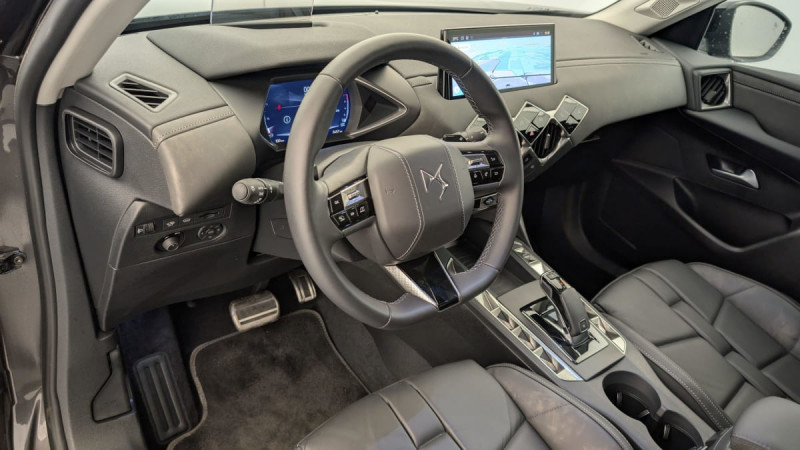 ABS, AFU, ESP, REF / Pédalier en aluminium / Double canule d'échappement chromée / Prise USB Data à l'AV / Fixations ISOFIX à la place passager AV et aux places latérales AR / Rétroviseur intérieur électrochrome sans cadre / Contrôle dynamique de stabilité (ESP) avec antipatinage des roues (ASR) / Combiné numérique / Détection de sous-gonflage / Essuie-vitre AV à déclenchement et cadencement automatiques / SOS & Assistance Service / Commutation automatique des feux de route / Poignées de portes affleurantes / Frein de stationnement électrique automatique / Freinage d'urgence automatique piloté par caméra et radar / Eclairage d'accueil et d'accompagnement / Eclairage de cave à pieds à LED / Mirror Screen sans fil via Wifi Compatible Apple CarPlay et Android Auto / Accès et démarrage mains libres Proximity / Airbags frontaux (passager déconnectable), latéraux AV et AR, rideaux AV et AR / Chargeur sans fil pour smartphone / Ecran tactile capacitif 10,3" HD / Lève-vitres AV et AR électriques et séquentiels Antipincement côté conducteur et sécurité enfant / DS IRIS SYSTEM avec Navigation 3D Connectée DS IRIS System / Réhausse manuelle du siège passager / Sièges AV confort Avec poche aumonière / Pare-soleils avec miroirs de courtoisie occultables éclairés à LED / Advanced Traction Control (Système de gestion de l'adhérence sur tout type de route) / Alarme périmétrique, volumétrique et fonction anti-soulèvement / Intérieur Cuir Nappa Art Basalte confection bracelet : Ciel de pavillon Gris Galet Volant Cuir fleur Décor Cuir Nappa Art Basalte Siège Cuir Nappa Art Basalte confection bracelet Planche de bord en Cuir Nappa Noir Art Leather / Aide au stationnement AV/AR, 360 Vision et surveillance d'angles morts /