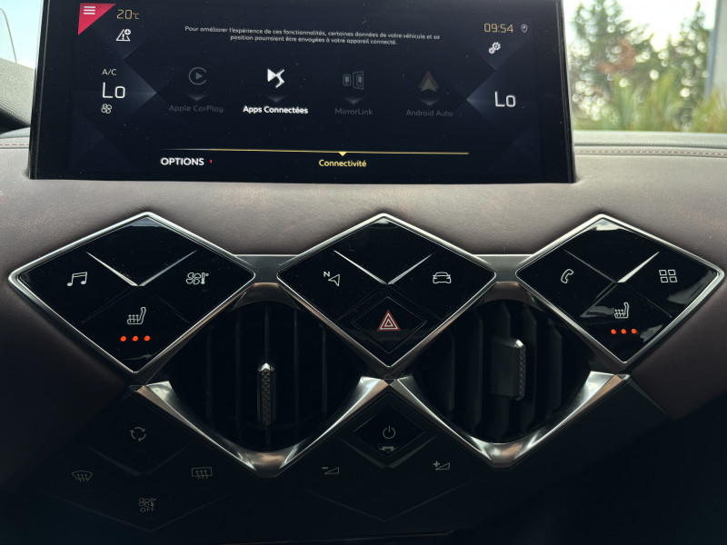 8 Haut parleurs / Appuis-tête avant actifs / Bacs de portes avant / Chargeur sans fil / Contrôle de Traction Intelligent / Cuir Nappa Art Rubis / Détecteur de sous-gonflage / DS Connect Box / DS Connect Nav avec Mirror Screen / DS Matrix Led Vision / DS Wings Noir pailleté texturé / Frein stationnement électrique automatiq / Freinage urg. Auto+Pk S. Ét.+Dri. Assist