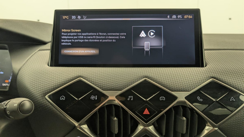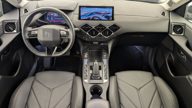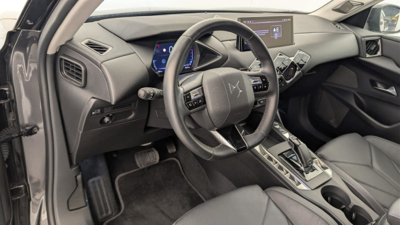 Kit de gonflage / Double canule d'échappement chromée / Prise USB Data à l'AV / Advanced Traction Control / Fixations ISOFIX à la place passager AV et aux places latérales AR / Pare-brise teinté et acoustique / Contrôle dynamique de stabilité (ESP) avec antipatinage des roues (ASR) / Combiné numérique / Détection de sous-gonflage / Essuie-vitre AV à déclenchement et cadencement automatiques / Réhausse manuelle de siège conducteur / Centre de roue Noir / SOS / Poignées de portes affleurantes / Frein de stationnement électrique automatique / Freinage d'urgence automatique piloté par caméra / ABS avec répartiteur électronique de freinage (REF) et Aide au Freinage d'Urgence (AFU) + Aide au démarrage en pente / Eclairage d'accueil et d'accompagnement / Mirror Screen sans fil via Wifi Compatible Apple CarPlay et Android Auto / Airbags frontaux (passager déconnectable), latéraux AV et AR, rideaux AV et AR / Ecran tactile capacitif 10,3" HD / Enjoliveur de feux AR noir brillant / Intérieur Cuir grainé Noir Basalte : Ciel de pavillon Gris Galet Volant Cuir fleur Décor Noir Basalte façon écaille Siège Cuir grainé Noir Basalte / Lève-vitres AV et AR électriques et séquentiels Antipincement côté conducteur et sécurité enfant / DS IRIS SYSTEM avec Navigation 3D Connectée DS IRIS System intègre la Navigation Connectée, et la reconnaissance vocale naturelle / Pack Confort : Accoudoir central AV Rétroviseur intérieur électrochrome sans cadre Eclairage de cave à pieds à LED Accès et démarrage mains libres Proximity Pare-soleils avec miroirs de courtoisie occultables éclairés à LED / Réhausse manuelle du siège passager / Rétroviseurs extérieurs avec embase et coque noir brillant / Sièges AV confort avec poche aumonière /