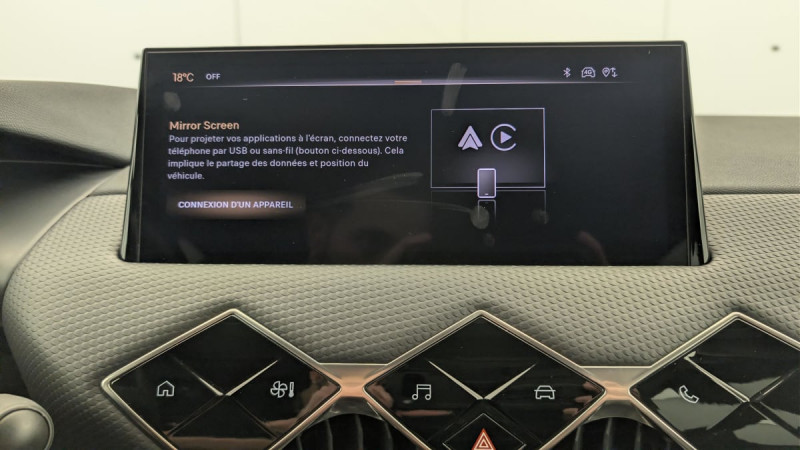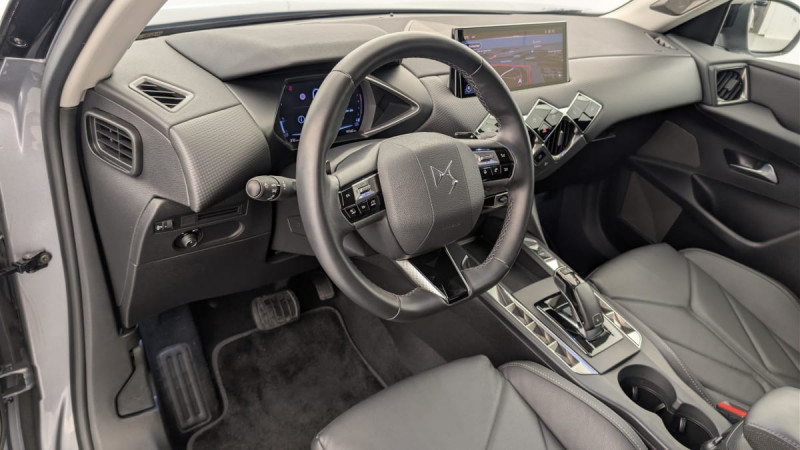 Kit de gonflage / Double canule d'échappement chromée / Prise USB Data à l'AV / Advanced Traction Control / Fixations ISOFIX à la place passager AV et aux places latérales AR / Pare-brise teinté et acoustique / Contrôle dynamique de stabilité (ESP) avec antipatinage des roues (ASR) / Combiné numérique / Détection de sous-gonflage / Essuie-vitre AV à déclenchement et cadencement automatiques / Réhausse manuelle de siège conducteur / Centre de roue Noir / SOS / Poignées de portes affleurantes / Frein de stationnement électrique automatique / Freinage d'urgence automatique piloté par caméra / ABS avec répartiteur électronique de freinage (REF) et Aide au Freinage d'Urgence (AFU) + Aide au démarrage en pente / Eclairage d'accueil et d'accompagnement / Mirror Screen sans fil via Wifi Compatible Apple CarPlay et Android Auto / Airbags frontaux (passager déconnectable), latéraux AV et AR, rideaux AV et AR / Ecran tactile capacitif 10,3" HD / Enjoliveur de feux AR noir brillant / Intérieur Cuir grainé Noir Basalte : Ciel de pavillon Gris Galet Volant Cuir fleur Décor Noir Basalte façon écaille Siège Cuir grainé Noir Basalte / Lève-vitres AV et AR électriques et séquentiels Antipincement côté conducteur et sécurité enfant / DS IRIS SYSTEM avec Navigation 3D Connectée DS IRIS System intègre la Navigation Connectée, et la reconnaissance vocale naturelle / Pack Confort : Accoudoir central AV Rétroviseur intérieur électrochrome sans cadre Eclairage de cave à pieds à LED Accès et démarrage mains libres Proximity Pare-soleils avec miroirs de courtoisie occultables éclairés à LED / Réhausse manuelle du siège passager / Rétroviseurs extérieurs avec embase et coque noir brillant / Sièges AV confort avec poche aumonière /