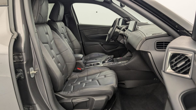 ABS, AFU, ESP, REF / Témoin et alerte sonore de non-bouclage des ceintures de sécurité AV/AR / Clignotants impulsionnels 3 coups / Reconnaissance vocale / Pieds de rétroviseurs extérieurs couleur carrosserie / Eclairage d'accueil automatique / Indicateur de rapports engagés / Lève-vitres AV/AR électriques, séquentiels et antipincement / Prise USB Data à l'AV / Rétroviseur intérieur électrochrome sans cadre / Fixations ISOFIX à la place passager AV et aux places latérales AR / Frein de stationnement électrique / Pare-brise teinté et acoustique / Verrouillage automatique des portes en roulant / Airbags frontaux aux places AV avec désactivation par clé de l'airbag passager / Airbags latéraux de type "thorax" aux places AV et AR / Contrôle dynamique de stabilité (ESP) avec antipatinage des roues (ASR) / ADML PROXIMITY Accès et démarrage Mains-Libres ave déverrouillage et déploiement automatique des poignées de portes affleurantes à l'approche du véhicule / Aide au stationnement AV et AR avec Caméra de recul / Rehausse manuelle du siège passager / DS MATRIX LED VISION / Combiné numérique / Détection de sous-gonflage / Antenne radio invisible / Essuie-vitre AV à déclenchement et cadencement automatiques / Système audio sur tablette tactile 10,3" HD à 8 HP avec prise USB et Bluetooth / Essuie-vitre AR avec intermittence indexée à la marche AR / Feux STOP à LED (3e feu) / Verrou sur porte conducteur / Démarrage Mains-Libres avec bouton de démarrage à pulsation / Eclairage d'accompagnement / Eclaireur de coffre / Porte-gobelets à l' AV / Trappe de recharge côté gauche / Chargeur embarqué de 11 kW / Freinage d'urgence automatique avec Alerte Active de Franchissement Involontaire de Ligne et Surveillance d'Angle Mort / Poignées d'ouverture de portes intérieures Chromées / Réhausse manuelle de siège conducteur / Eclairage de boîte à gants, d'accoudoir central AV et de coffre à LED / Banquette AR 2/3 - 1/3 avec 3 appuie-tête / Navigation avec Mirror Screen et radio numérique / SOS & Assistance / Crochet d'arrimage dans le coffre / Système sonore polyphonique à 8 HP / Câble de recharge mode 3 triphasé 22 kW / 3 modes de conduite selectionnables: Normal, Sport, Eco /