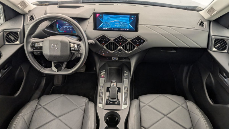 ABS, AFU, ESP, REF / Allumage automatique des feux de détresse en cas de forte décélération / Témoin et alerte sonore de non-bouclage des ceintures de sécurité AV/AR / Clignotants impulsionnels 3 coups / Reconnaissance vocale / Pieds de rétroviseurs extérieurs couleur carrosserie / Eclairage d'accueil automatique / Indicateur de rapports engagés / Lève-vitres AV/AR électriques, séquentiels et antipincement / Prise USB Data à l'AV / Pack Sécurité : Alerte active de franchissement involontaire de ligne Freinage d'urgence automatique jusqu'à 140 km/h Surveillance d'angles morts / Chargeur sans fil / Rétroviseur intérieur électrochrome sans cadre / Fixations ISOFIX à la place passager AV et aux places latérales AR / Frein de stationnement électrique / Pare-brise teinté et acoustique / Verrouillage automatique des portes en roulant / Airbags frontaux aux places AV avec désactivation par clé de l'airbag passager / Airbags latéraux de type "thorax" aux places AV et AR / Contrôle dynamique de stabilité (ESP) avec antipatinage des roues (ASR) / ADML PROXIMITY Accès et démarrage Mains-Libres ave déverrouillage et déploiement automatique des poignées de portes affleurantes à l'approche du véhicule / Combiné numérique / Détection de sous-gonflage / Antenne radio invisible / Essuie-vitre AV à déclenchement et cadencement automatiques / Système audio sur tablette tactile 10,3" HD à 8 HP avec prise USB et Bluetooth / Essuie-vitre AR avec intermittence indexée à la marche AR / Feux STOP à LED (3e feu) / Démarrage Mains-Libres avec bouton de démarrage à pulsation / Eclairage d'accompagnement / Eclaireur de coffre / Porte-gobelets à l' AV / Trappe de recharge côté gauche / Chargeur embarqué de 11 kW / Poignées d'ouverture de portes intérieures Chromées / Réhausse manuelle de siège conducteur / Eclairage de boîte à gants, d'accoudoir central AV et de coffre à LED / Banquette AR 2/3 - 1/3 avec 3 appuie-tête / Inspiration DS BASTILLE avec sièges Cuir et pavillon clair : Aumônières de dos sur les sièges AV Plip avec insert Trame DS Pommeau de levier de vitesses en cuir lisse Sièges Cuir grainé Noir Basalte DS Wings chromées Rehausse manuelle du siège passager Grille de calandre Noir Mat Jonc sur volet Chromé signé CROSSBACK et paupières Chromées avec logo DS Guillochage "Clous de Paris" Chrome Satin Pare-soleil avec miroir de courtoisie et éclairage à LED Plafonnier tactile à LED, liseuses AR à LED, éclairage de cave à pieds à LED Poignées de maintien aux places AR Sièges AV à haute densité Volant gainé en Cuir pleine fleur Accoudoir central AV Décors TEP facon Cuir Noir Basalte sur planche de bord et panneaux de porte / Navigation avec Mirror Screen et radio numérique / SOS & Assistance / Crochet d'arrimage dans le coffre / Système sonore polyphonique à 8 HP / Freinage Régénératif permettant une meilleure récupération d'energie lors des phases de décélération / Câble de recharge mode 3 triphasé 22 kW /