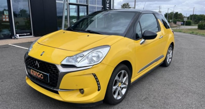 DS 3 1.6 BLUEHDI 100 CH SO CHIC + CAMERA DE RECUL berline, jaune, 5 cv, 3 portes, première mise en circulation le 26/09/2017, garantie 6 mois. - NOS SERVICES ET PRESTATIONS COMPLÉMENTAIRES - - Visite virtuelle : avant de vous déplacer, visualisez votre futur véhicule sous toutes ses coutures . Contactez-nous pour en voir plus ! - Extension de garantie jusqu'à 60 mois. - Solutions de Financement de 12 à 84 mois. - Livraison dans toute la France métropolitaine (sur devis). - Reprise possible de votre ancien véhicule. - Les informations délivrées par cette annonce sont non contractuelles et données à titre indicatif. Packs disponibles (véhicules éligibles au Label) - Pack Clés en Main - 691 € TTC(¹)(²) Démarches (hors carte grise) | 1/4 de carburant | Nettoyage First | Garantie 6 mois | Label inclus? - Pack Sérénité - 891 € TTC(¹)(²)- Démarches (hors carte grise) | 1/2 de carburant | Nettoyage Confort | Garantie 12 mois | Label inclus? - Pack Prestige - 1.091 € TTC(¹)(²) Démarches (hors carte grise) | Plein complet | Nettoyage Prestige | Garantie 12 mois | Label inclus? + Surprise du chef - (¹) Les véhicules non éligibles au Label bénéficient de tarifs préférentiels. Veuillez contacter votre conseiller pour obtenir les conditions tarifaires applicables. (²) Tarif pour les véhicules deux roues motrices dont la valeur de vente est inférieure à 60 000 € TTC. - Véhicule visible sur rendez vous 5 places OPTIONS ET ÉQUIPEMENTS : Conduite : - Pack Auto - Stop & Start - allumage automatique des feux - détecteur de pluie Extérieur : - Feux de freinage d'urgence - Répétiteurs de clignotant dans rétro ext - Calandre chromée - caméra de recul - essuie-glace arrière - phares halogènes - rétroviseurs rabattables - rétroviseurs électriques Intérieur : - Eclairage d'ambiance - banquette 1/3 - 2/3 - climatisation : automatique - fermeture centralisée - ordinateur de bord - prise 12V - réglages du volant : profondeur - rétroviseur interieur electrochrome - verrouillage automatique des portes en roulant - verrouillage à distance - vitres surteintées - vitres électriques - volant cuir Pack : - Sieges arrières rabattable - anti démarrage - volant réglable Sécurité : - ABS - Aide au demarrage en pente - Airbags rideaux - Airbags rideaux avant - ESP - aide au freinage d'urgence - airbags latéraux - anti-patinage - contrôle pression des pneus - fixations ISOFIX - phares antibrouillard - répartiteur électronique de freinage Autres équipements et informations : - Classe Crit'air : 2 - Puissance kilowatt : 73 kw - feux de circulation diurne - nombre de rapports : 5 vitesses - puissance réelle : 99 ch - émission CO2 : 87 g/km - état : excellent Référence annonce : d143348