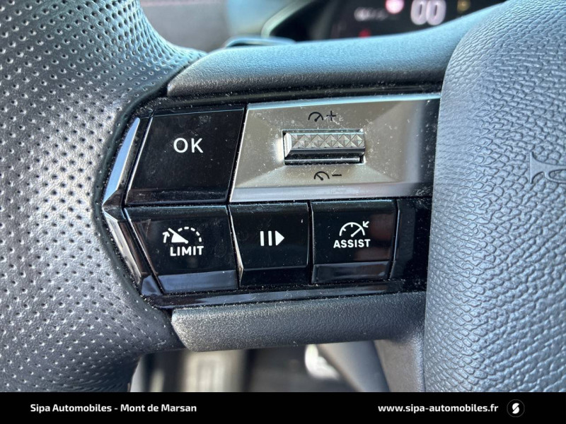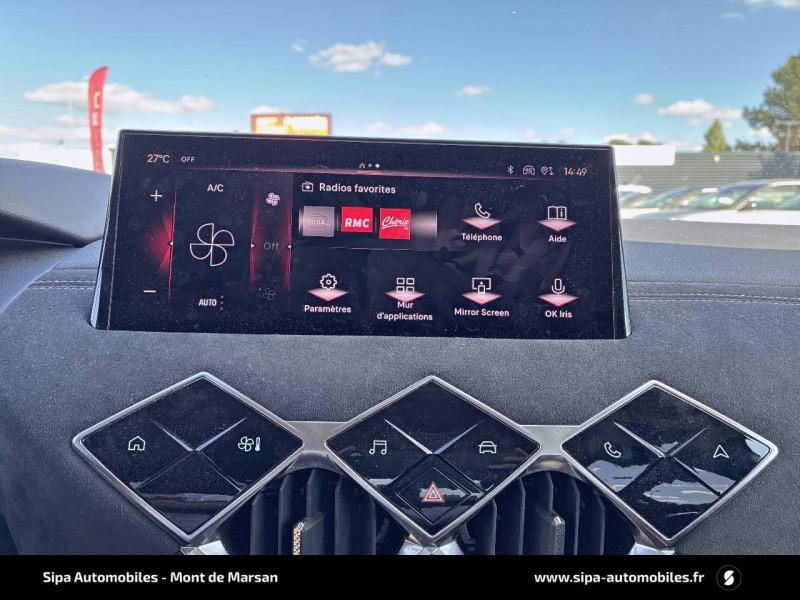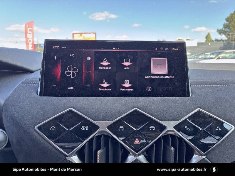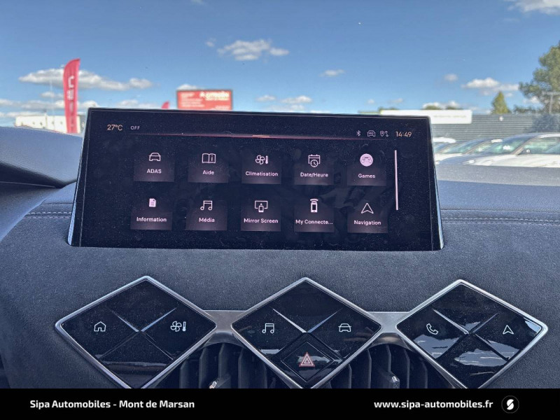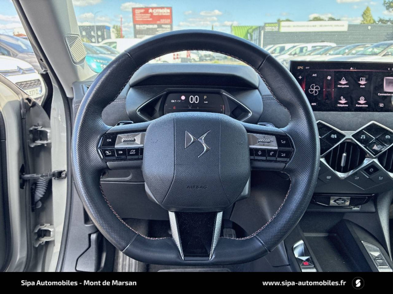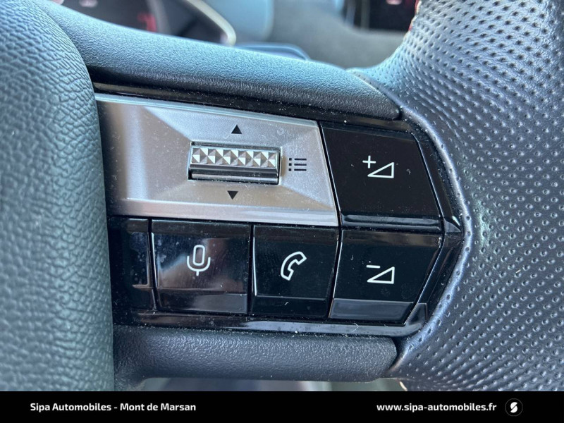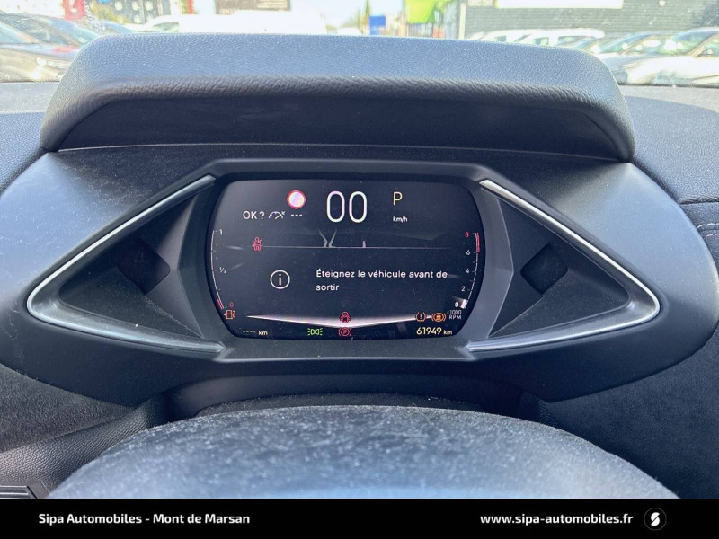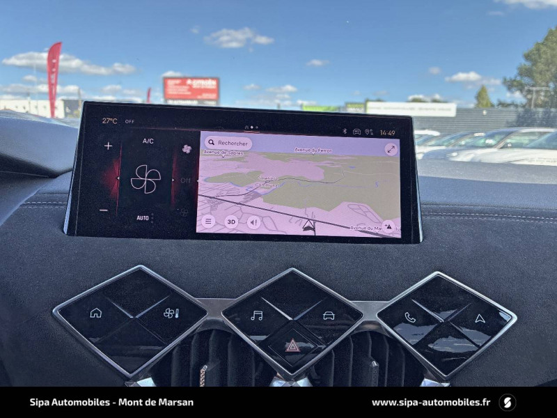 ABS avec répartiteur électronique de freinage (REF) et Aide au Freinage d'Urgence (AFU) / ADML PROXIMITY Accès et démarrage Mains-Libres ave déverrouillage et déploiement automatique des poignées de portes affleurantes à l'approche du véhicule / Airbags frontaux aux places AV avec désactivation par clé de l'airbag passager / Airbags latéraux de type "thorax" aux places AV et AR / Alerte de survitesse / Allumage automatique des feux de détresse en cas de forte décélération / Antenne radio invisible / Badge de planche de bord "DS PERFORMANCE Line" / Badges latéraux sur portes AV PERFORMANCE Line / Banquette AR 2/3 - 1/3 avec 3 appuie-tête / Centre de roue Carmin / Clignotants impulsionnels 3 coups / Combiné numérique / Contrôle de traction intelligent / Contrôle dynamique de stabilité (ESP) avec antipatinage des roues (ASR) / Crochet d'arrimage dans le coffre / Démarrage Mains-Libres avec bouton de démarrage à pulsation / Détection de sous-gonflage / Double canule d'échappement chromée / DS MATRIX LED VISION / DS Sensorial Drive / DS Wings Noir pailleté texturé / Eclairage d'accompagnement / Eclairage d'accueil automatique / Eclairage de boîte à gants, d'accoudoir central AV et de coffre à LED / Eclaireur de coffre / Essuie-vitre AR avec intermittence indexée à la marche AR / Essuie-vitre AV à déclenchement et cadencement automatiques / Facade centrale a commandes sensitives / Feux STOP à LED (3e feu) / Filtre à charbon actif / Fixations ISOFIX à la place passager AV et aux places latérales AR / Freinage d'urgence automatique jusqu'à 85 km/h / Frein de stationnement électrique automatique / Grille de calandre noir brillant / Guide utilisateur numérique / Indicateur de rapports engagés / Intérieur Tissu tressé Basalte avec Alcantara PERFORMANCE Line / Jonc sur volet Noir Brillant signé CROSSBACK et paupières Noir pailleté texturé avec logo DS / Lève-vitres AV et AR électriques et séquentiels, avec antipincement sur la vitre conducteur / Mirror Screen / Navigation avec Mirror Screen et radio numérique / Pare-brise teinté et acoustique / Pédalier alu / Pieds de rétroviseurs extérieurs couleur carrosserie / Poignées de maintien aux places AV / Poignées de portes affleurantes / Poignées de portes affleurantes ouverture à l'approche / Poignées d'ouverture de portes intérieures Chromées / Porte-gobelets à l' AV / Portières avec lécheurs de vitres invisibles / Prise USB Data à l'AV / Reconnaissance vocale / Réhausse manuelle de siège conducteur / Rehausse manuelle du siège passager / Rétroviseur intérieur électrochrome sans cadre / Services Pack Navigation 3 ANS INCLUS à l'achat du véhicule: information trafic en temps réel grâce au service TomTom Traffic, conditions météorologiques, prix des carburants, disponibilité et tarifs des parkings, Zones de Danger / Seuils de porte AV DS PERFORMANCE Line / Seuils de portes AV en métal chromé / Sièges AV réglables en longueur / SOS & Assistance / Système audio sur tablette tactile 10,3" HD à 8 HP avec prise USB et Bluetooth / Système sonore polyphonique à 8 HP / Témoin et alerte sonore de non-bouclage des ceintures de sécurité AV/AR / Verrouillage automatique des portes en roulant / Verrou sur porte conducteur / Zone De Danger
