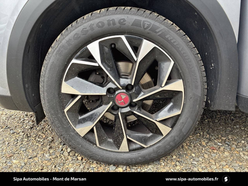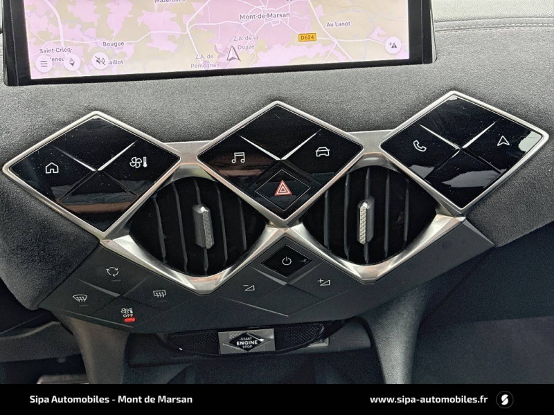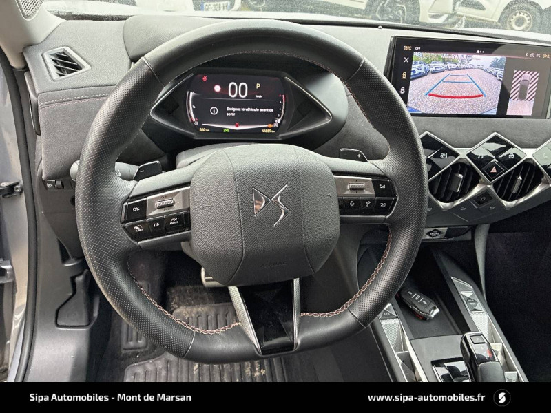 ABS avec répartiteur électronique de freinage (REF) et Aide au Freinage d'Urgence (AFU) / ADML PROXIMITY Accès et démarrage Mains-Libres ave déverrouillage et déploiement automatique des poignées de portes affleurantes à l'approche du véhicule / Airbags frontaux aux places AV avec désactivation par clé de l'airbag passager / Airbags latéraux de type "thorax" aux places AV et AR / Alerte de survitesse / Allumage automatique des feux de détresse en cas de forte décélération / Antenne radio invisible / Badge de planche de bord "DS PERFORMANCE Line" / Badges latéraux sur portes AV PERFORMANCE Line / Banquette AR 2/3 - 1/3 avec 3 appuie-tête / Centre de roue Carmin / Clignotants impulsionnels 3 coups / Combiné numérique / Contrôle de traction intelligent / Contrôle dynamique de stabilité (ESP) avec antipatinage des roues (ASR) / Crochet d'arrimage dans le coffre / Démarrage Mains-Libres avec bouton de démarrage à pulsation / Détection de sous-gonflage / Double canule d'échappement chromée / DS MATRIX LED VISION / DS Sensorial Drive / DS Wings Noir pailleté texturé / Eclairage d'accompagnement / Eclairage d'accueil automatique / Eclairage de boîte à gants, d'accoudoir central AV et de coffre à LED / Eclaireur de coffre / Essuie-vitre AR avec intermittence indexée à la marche AR / Essuie-vitre AV à déclenchement et cadencement automatiques / Facade centrale a commandes sensitives / Feux STOP à LED (3e feu) / Filtre à charbon actif / Fixations ISOFIX à la place passager AV et aux places latérales AR / Freinage d'urgence automatique jusqu'à 85 km/h / Frein de stationnement électrique automatique / Grille de calandre noir brillant / Guide utilisateur numérique / Indicateur de rapports engagés / Intérieur Tissu tressé Basalte avec Alcantara PERFORMANCE Line / Jonc sur volet Noir Brillant signé CROSSBACK et paupières Noir pailleté texturé avec logo DS / Lève-vitres AV et AR électriques et séquentiels, avec antipincement sur la vitre conducteur / Mirror Screen / Navigation avec Mirror Screen et radio numérique / Pare-brise teinté et acoustique / Pédalier alu / Pieds de rétroviseurs extérieurs couleur carrosserie / Poignées de maintien aux places AV / Poignées de portes affleurantes / Poignées de portes affleurantes ouverture à l'approche / Poignées d'ouverture de portes intérieures Chromées / Porte-gobelets à l' AV / Portières avec lécheurs de vitres invisibles / Prise USB Data à l'AV / Reconnaissance vocale / Réhausse manuelle de siège conducteur / Rehausse manuelle du siège passager / Rétroviseur intérieur électrochrome sans cadre / Services Pack Navigation 3 ANS INCLUS à l'achat du véhicule: information trafic en temps réel grâce au service TomTom Traffic, conditions météorologiques, prix des carburants, disponibilité et tarifs des parkings, Zones de Danger / Seuils de porte AV DS PERFORMANCE Line / Seuils de portes AV en métal chromé / Sièges AV réglables en longueur / SOS & Assistance / Système audio sur tablette tactile 10,3" HD à 8 HP avec prise USB et Bluetooth / Système sonore polyphonique à 8 HP / Témoin et alerte sonore de non-bouclage des ceintures de sécurité AV/AR / Verrouillage automatique des portes en roulant / Verrou sur porte conducteur / Zone De Danger