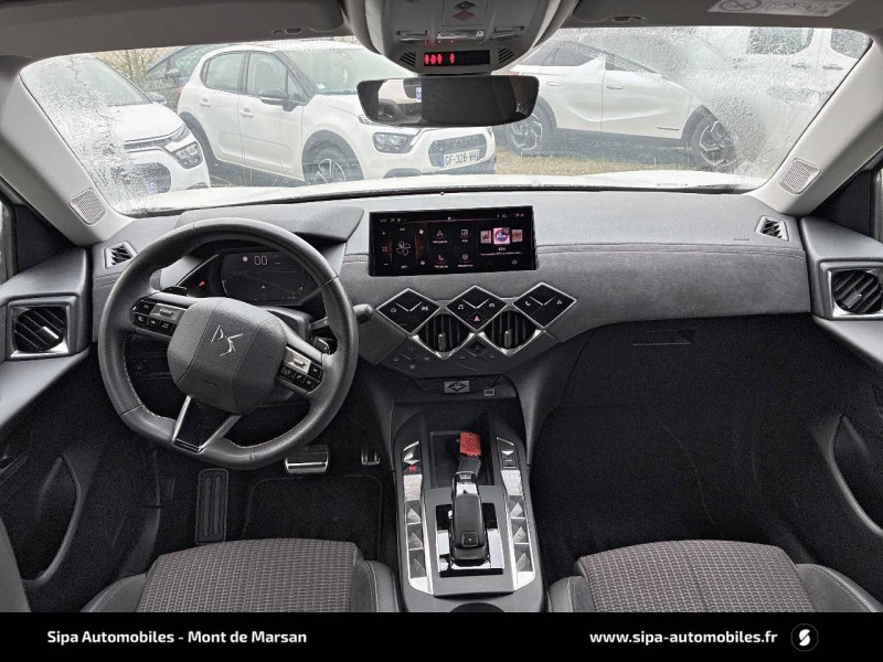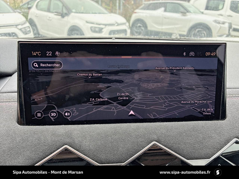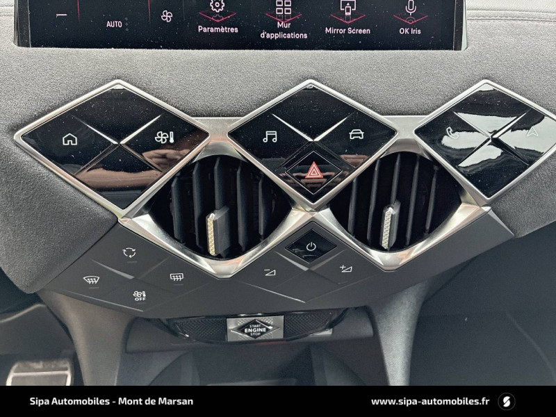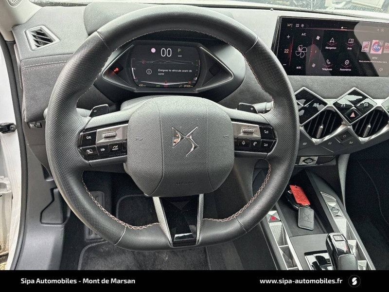 ABS avec répartiteur électronique de freinage (REF) et Aide au Freinage d'Urgence (AFU) / ADML PROXIMITY Accès et démarrage Mains-Libres ave déverrouillage et déploiement automatique des poignées de portes affleurantes à l'approche du véhicule / Airbags frontaux aux places AV avec désactivation par clé de l'airbag passager / Airbags latéraux de type "thorax" aux places AV et AR / Alerte de survitesse / Allumage automatique des feux de détresse en cas de forte décélération / Antenne radio invisible / Badge de planche de bord "DS PERFORMANCE Line" / Badges latéraux sur portes AV PERFORMANCE Line / Banquette AR 2/3 - 1/3 avec 3 appuie-tête / Centre de roue Carmin / Clignotants impulsionnels 3 coups / Combiné numérique / Contrôle de traction intelligent / Contrôle dynamique de stabilité (ESP) avec antipatinage des roues (ASR) / Crochet d'arrimage dans le coffre / Démarrage Mains-Libres avec bouton de démarrage à pulsation / Détection de sous-gonflage / Double canule d'échappement chromée / DS MATRIX LED VISION / DS Sensorial Drive / DS Wings Noir pailleté texturé / Eclairage d'accompagnement / Eclairage d'accueil automatique / Eclairage de boîte à gants, d'accoudoir central AV et de coffre à LED / Eclaireur de coffre / Essuie-vitre AR avec intermittence indexée à la marche AR / Essuie-vitre AV à déclenchement et cadencement automatiques / Facade centrale a commandes sensitives / Feux STOP à LED (3e feu) / Filtre à charbon actif / Fixations ISOFIX à la place passager AV et aux places latérales AR / Freinage d'urgence automatique jusqu'à 85 km/h / Frein de stationnement électrique automatique / Grille de calandre noir brillant / Guide utilisateur numérique / Indicateur de rapports engagés / Intérieur Tissu tressé Basalte avec Alcantara PERFORMANCE Line / Jonc sur volet Noir Brillant signé CROSSBACK et paupières Noir pailleté texturé avec logo DS / Lève-vitres AV et AR électriques et séquentiels, avec antipincement sur la vitre conducteur / Mirror Screen / Navigation avec Mirror Screen et radio numérique / Pare-brise teinté et acoustique / Pédalier alu / Pieds de rétroviseurs extérieurs couleur carrosserie / Poignées de maintien aux places AV / Poignées de portes affleurantes / Poignées de portes affleurantes ouverture à l'approche / Poignées d'ouverture de portes intérieures Chromées / Porte-gobelets à l' AV / Portières avec lécheurs de vitres invisibles / Prise USB Data à l'AV / Reconnaissance vocale / Réhausse manuelle de siège conducteur / Rehausse manuelle du siège passager / Rétroviseur intérieur électrochrome sans cadre / Services Pack Navigation 3 ANS INCLUS à l'achat du véhicule: information trafic en temps réel grâce au service TomTom Traffic, conditions météorologiques, prix des carburants, disponibilité et tarifs des parkings, Zones de Danger / Seuils de porte AV DS PERFORMANCE Line / Seuils de portes AV en métal chromé / Sièges AV réglables en longueur / SOS & Assistance / Système audio sur tablette tactile 10,3" HD à 8 HP avec prise USB et Bluetooth / Système sonore polyphonique à 8 HP / Témoin et alerte sonore de non-bouclage des ceintures de sécurité AV/AR / Verrouillage automatique des portes en roulant / Verrou sur porte conducteur / Zone De Danger