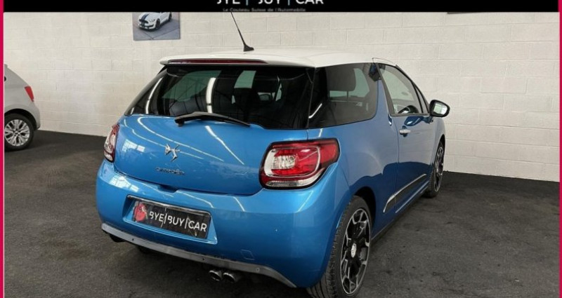 DS DS3 1.6 THP 16V - 150 Sport Chic, berline, bleu, 9 cv, 3 portes, première mise en circulation le 05/11/2010. Prix TTC : 6 490 € 5 places Emission de CO2 : 155 g CO2/km Consommation mixte : 6.7 L/100 Consommation sur route : 5.1 L/100 Consommation en ville : 9.4 L/100 Kilométrage compteur OPTIONS ET ÉQUIPEMENTS : Extérieur : - Jantes alliage 17'' BELLONE (avec centres de roues colorés) Intérieur : - Accoudoir central avant avec rangement - Cuir integral Pack : - Teinte bi-ton métallisée ou nacrée Autres équipements et informations : - Kit Décor intérieur Blanc si bi ton blanc ou monoton - ct ok - [URL masquée pour votre sécurité] - origine france - revision ok Référence annonce : 0523-0001219