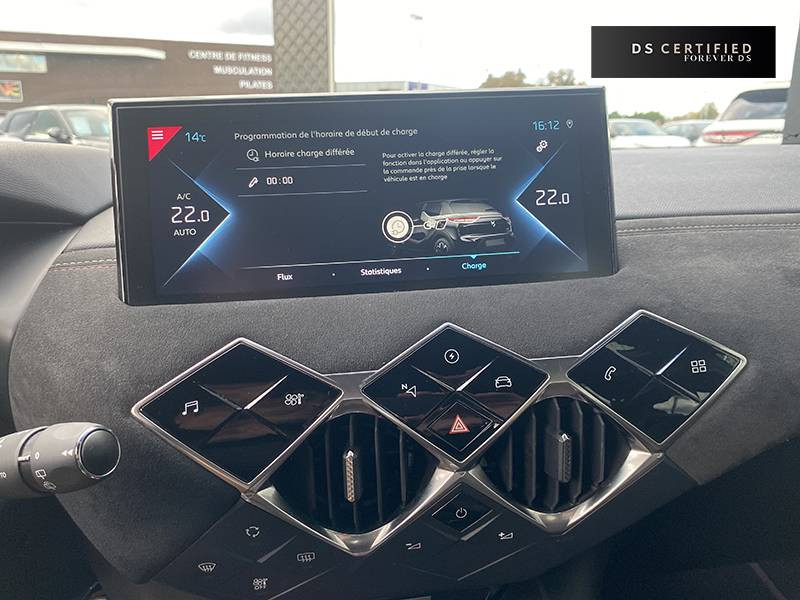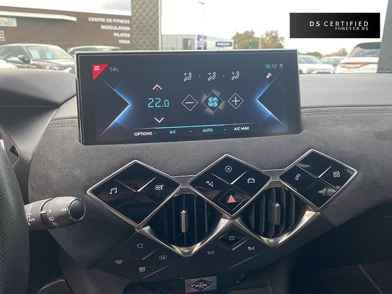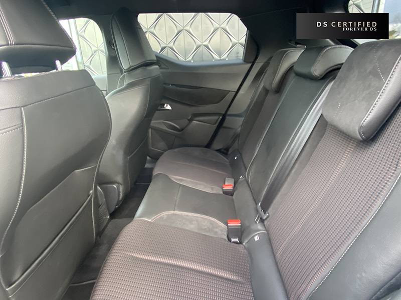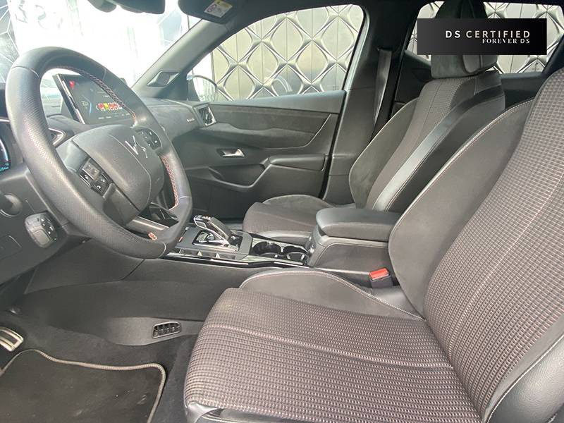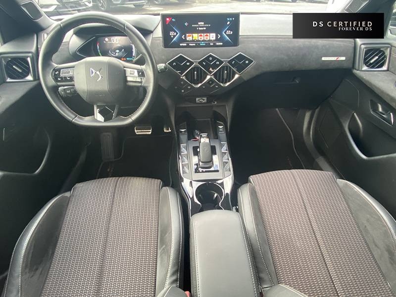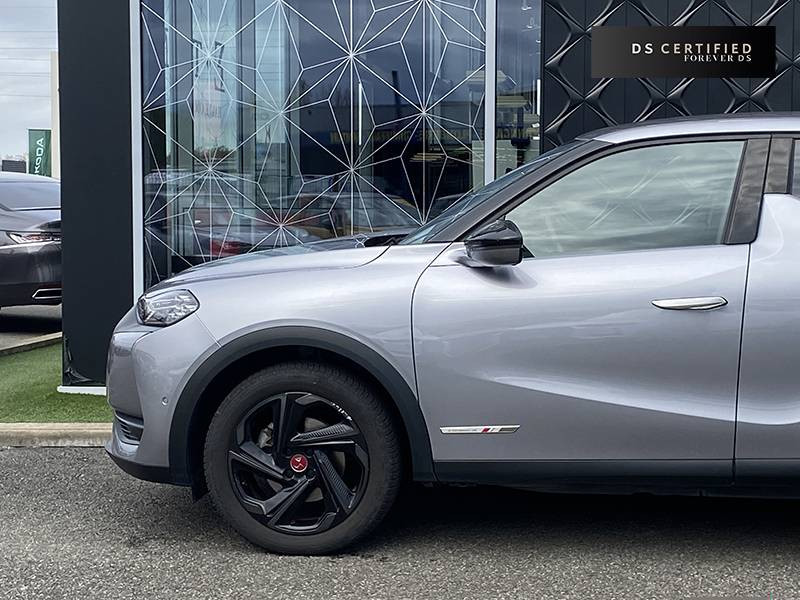 ABS, AFU, ESP, REF / ADML PROXIMITY Accès et démarrage Mains-Libres ave déverrouillage et déploiement automatique des poignées de portes affleurantes à l'approche du véhicule / ADML PROXIMITY avec DS CONNECT BOX / Airbags frontaux aux places AV avec désactivation par clé de l'airbag passager / Airbags latéraux de type "thorax" aux places AV et AR / Alerte de survitesse / Allumage automatique des feux de détresse en cas de forte décélération / Antenne radio invisible / Aumônières de dos sur les sièges AV / Badge de planche de bord "DS PERFORMANCE Line" / Badges latéraux sur portes AV PERFORMANCE Line / Calandre surmontée de l'emblème E-TENSE / Centre de roue Carmin / Clignotants impulsionnels 3 coups / Combiné numérique / Contrôle de traction intelligent / Contrôle dynamique de stabilité (ESP) avec antipatinage des roues (ASR) / Crochet d'arrimage dans le coffre au dessus du plancher de coffre x4 / Démarrage Mains-Libres avec bouton de démarrage à pulsation / Détection de sous-gonflage / DS Connect Box / DS CONNECT NAV avec Mirror Screen et radio numérique / DS MATRIX LED VISION / DS Wings Noir Pailleté Texturé / Eclairage d'accompagnement / Eclairage d'accueil automatique / Eclairage de boîte à gants, d'accoudoir central AV et de coffre à LED / Eclaireur de coffre / Essuie-vitre AR avec intermittence indexée à la marche AR / Essuie-vitre AV à déclenchement et cadencement automatiques / Facade centrale a commandes sensitives / Feux STOP à LED (3e feu) / Filtre à charbon actif / Fixations ISOFIX à la place passager AV et aux places latérales AR / Freinage d'urgence automatique avec Pack Sécurité / Freinage d'urgence automatique jusqu'à 140 km/h / Freinage d'urgence automatique jusqu'à 85 km/h / Frein de stationnement électrique / Grille de calandre Gris Anthra / Grille de calandre noir brillant / Guide utilisateur numérique / Indicateur de rapports engagés / Inspiration DS PERFORMANCE Line / Lève-vitres AV/AR électriques, séquentiels et antipincement / Mirror Screen / Pack Sécurité / Panneaux de portes en alcantara / Pare-brise teinté et acoustique / Pare-soleil avec miroir de courtoisie et éclairage à LED / Pédalier alu / Pieds de rétroviseurs extérieurs couleur carrosserie / Plafonnier tactile à LED, liseuses AR à LED, éclairage de cave à pieds à LED / Planche de bord en alcantara / Poignées de maintien aux places AR / Poignées de maintien aux places AV / Poignées de portes affleurantes / Poignées de portes affleurantes ouverture à l'approche / Poignées d'ouverture de portes intérieures Chromées / Porte-gobelets à l' AV / Portières avec lécheurs de vitres invisibles / Prise USB Data à l'AV / Radio analogique / Reconnaissance vocale / Réhausse manuelle de siège conducteur / Rehausse manuelle du siège passager / Rétroviseur intérieur électrochrome sans cadre / Seuils de portes AV en métal chromé / Sièges AV à haute densité / Sièges AV réglables en longueur / Signature E-TENSE sur le hayon / Surtapis AV/AR siglé DS PERFORMANCE LINE / Surveillance d'angles morts / Système audio sur tablette tactile 10,3" HD à 8 HP avec prise USB et Bluetooth / Système sonore polyphonique / Témoin et alerte sonore de non-bouclage des ceintures de sécurité AV/AR / Trappe de recharge côté gauche / Verrouillage automatique des portes en roulant / Verrou sur porte conducteur / Volant gainé en Cuir pleine fleur avec surpiqûres PERFORMANCE Line / Zone De Danger