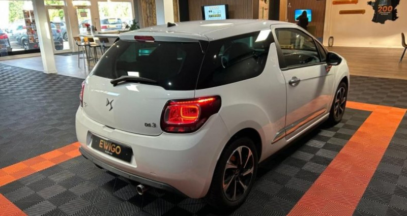DS 3 1.2 L 110 EAT BVA SO CHIC berline, blanc, 5 cv, 3 portes, première mise en circulation le 29/03/2016. - NOS SERVICES ET PRESTATIONS COMPLÉMENTAIRES - - Visite virtuelle : avant de vous déplacer, visualisez votre futur véhicule sous toutes ses coutures . Contactez-nous pour en voir plus ! - Extension de garantie jusqu'à 60 mois. - Solutions de Financement de 12 à 84 mois. - Livraison dans toute la France métropolitaine (sur devis). - Reprise possible de votre ancien véhicule. - Les informations délivrées par cette annonce sont non contractuelles et données à titre indicatif. Packs disponibles (véhicules éligibles au Label) - Pack Clés en Main - 691 € TTC(¹)(²) Démarches (hors carte grise) | 1/4 de carburant | Nettoyage First | Garantie 6 mois | Label inclus? - Pack Sérénité - 891 € TTC(¹)(²) Démarches (hors carte grise) | 1/2 de carburant | Nettoyage Confort | Garantie 12 mois | Label inclus? - Pack Prestige - 1.091 € TTC(¹)(²) Démarches (hors carte grise) | Plein complet | Nettoyage Prestige | Garantie 12 mois | Label inclus? + Surprise du chef - (¹) Les véhicules non éligibles au Label bénéficient de tarifs préférentiels. Veuillez contacter votre conseiller pour obtenir les conditions tarifaires applicables. (²) Tarif pour les véhicules deux roues motrices dont la valeur de vente est inférieure à 60 000 € TTC. - Véhicule visible sur rendez vous 5 places OPTIONS ET ÉQUIPEMENTS : Audio - Télécommunications : - Radio - Bluetooth Conduite : - Stop & Start - limiteur de vitesse Extérieur : - Capteurs d'aide au stationnement arrière - Capteurs d'aide au stationnement avant - Déflecteur - Sortie d'échappement chromée - jantes : aluminium - rétroviseurs rabattables - système d'aide au stationnement Intérieur : - Siège passager repliable - accoudoir central - banquette 1/3 - 2/3 - climatisation : automatique - direction assistée - fermeture centralisée - ordinateur de bord - verrouillage à distance - vitres électriques Pack : - Boîte de vitesse automatique - Intérieur tissu - Pneus tout temps saisons - Sièges arrières 1/3 - 2/3 - détecteur de lumière - nombre de rapports : 6 vitesses - Écran multifonction Sécurité : - Airbags - airbag coté passager - phares antibrouillard - roue de secours Autres équipements et informations : - Carnet d'entretien - Factures d'entretien - Classe Crit'air : 1 - Phares AV de jour - Puissance kilowatt : 81 kw - puissance réelle : 110 ch - émission CO2 : 105 g/km Référence annonce : d148230