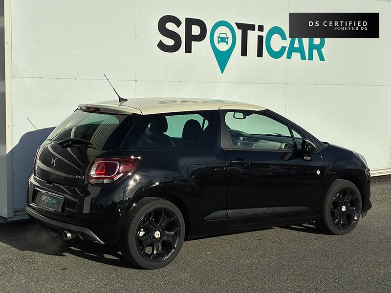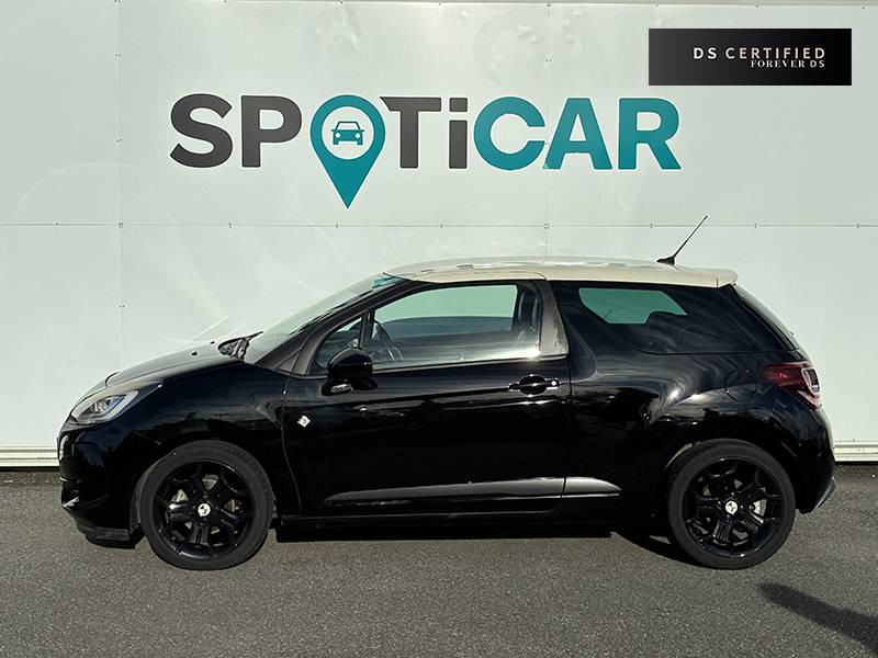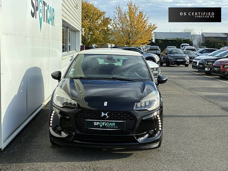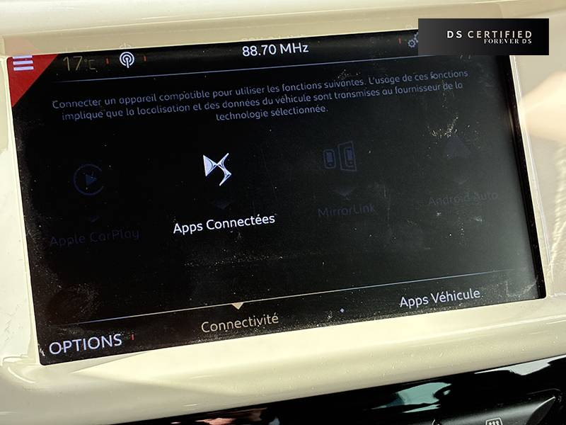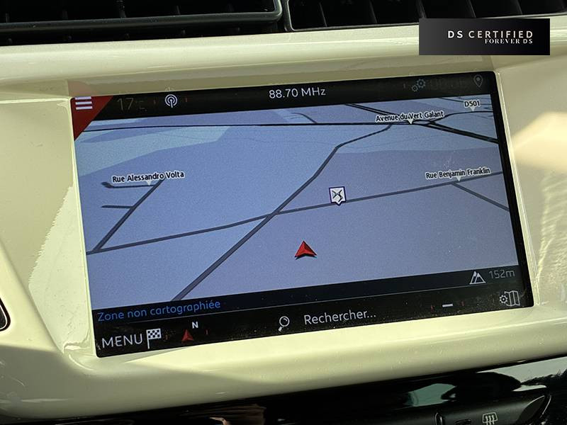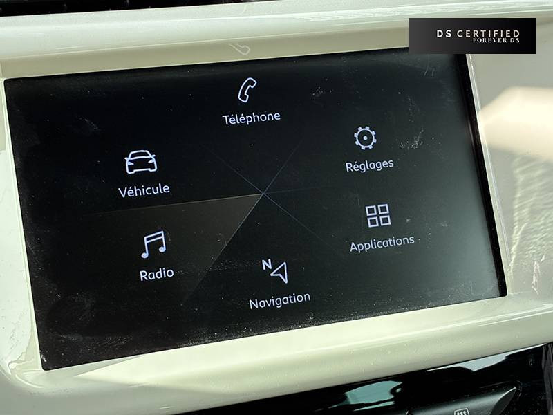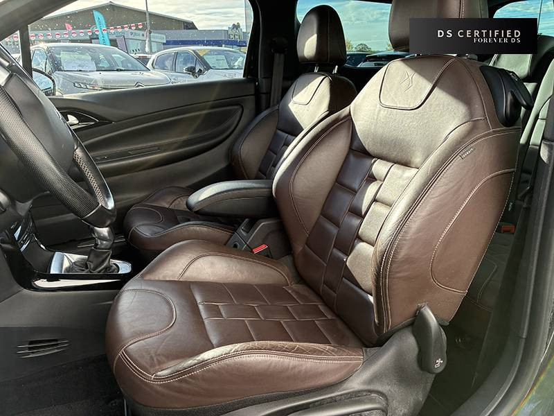 360 Vision / ABS, AFU, ESP, REF / Baguettes latérales chromées / Décor Noir Brillant / Détection de sous-gonflage / Eclairage d'ambiance / Jantes alliage 17" BELLONE Noires Brillant / Mirror Screen / Pack Auto / Pack Cuir Nappa Brun Trinitario / Pack DS Connect Nav avec DS Connect Box / Parfumeur d'ambiance / Pavillon bi-ton Crème Parthénon / Personnalisation Café Racer Des centres de roue Crème Parthénon, des badges de portières Café Racer, une calandre DS Wings Noir pailletée texturée, des baguettes latérales Noir pailletées texturées, un bandeau de planche de bord Crème Parthénon avec logo Café Racer et des pieds de rétroviseurs extérieurs Noir mat / Rehausse de siège conducteur / Surtapis AV et AR / Système audio sur tablette tactile 7"