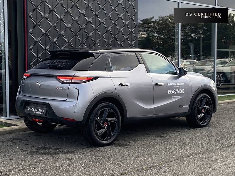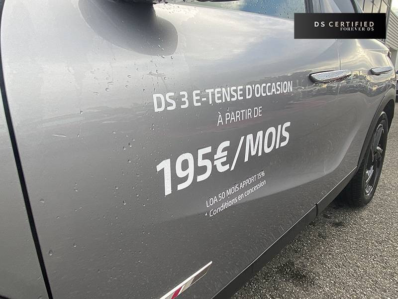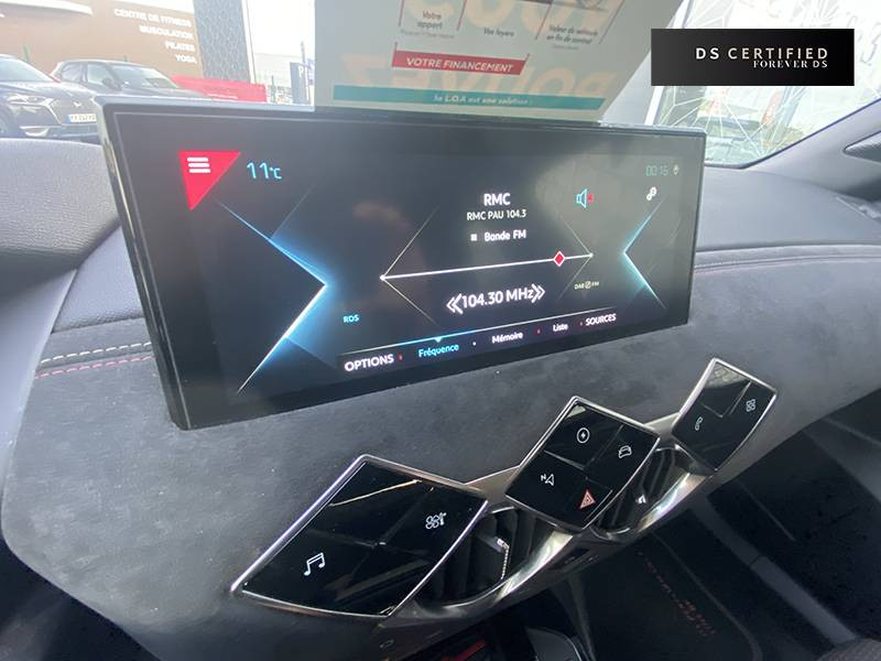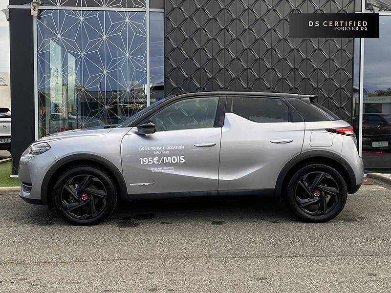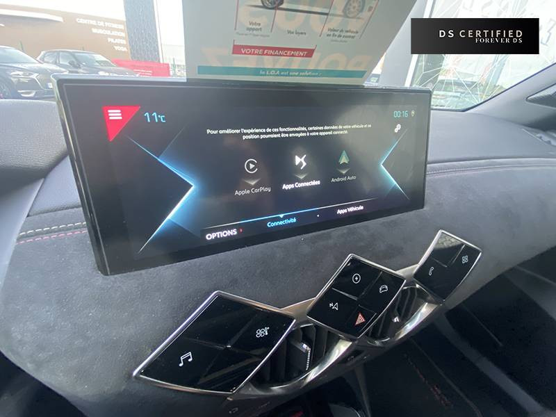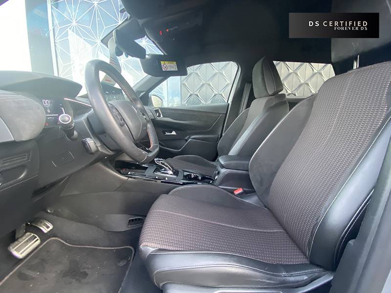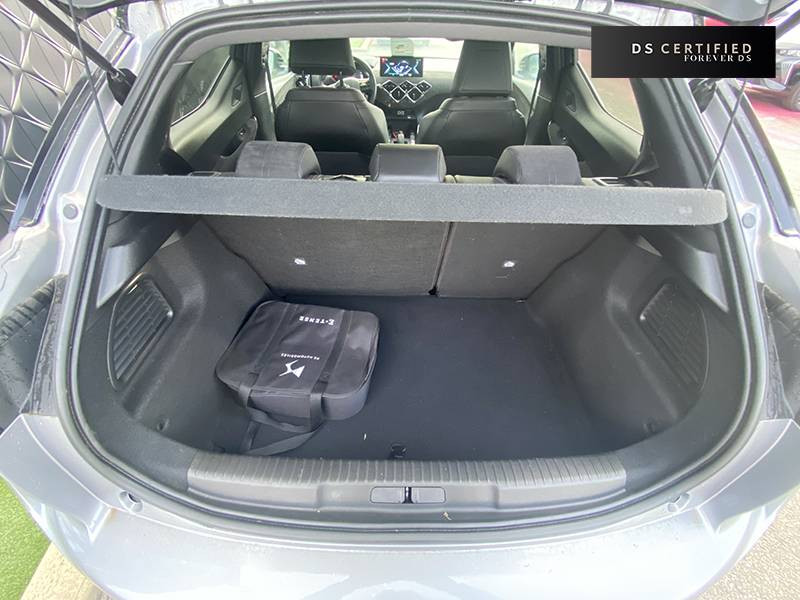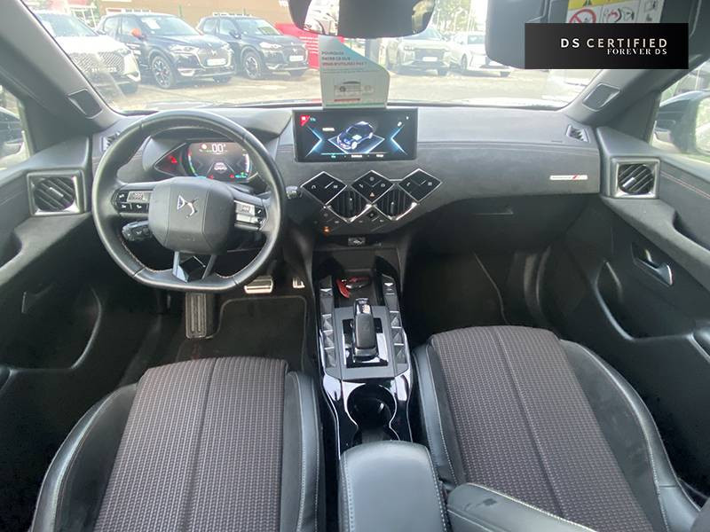 3 modes de conduite selectionnables: Normal, Sport, Eco / ABS, AFU, ESP, REF / ADML PROXIMITY Accès et démarrage Mains-Libres ave déverrouillage et déploiement automatique des poignées de portes affleurantes à l'approche du véhicule / Airbags frontaux aux places AV avec désactivation par clé de l'airbag passager / Airbags latéraux de type "thorax" aux places AV et AR / Alerte de survitesse / Allumage automatique des feux de détresse en cas de forte décélération / Antenne radio invisible / Aumônières de dos sur les sièges AV / Badge de planche de bord "DS PERFORMANCE Line" / Badges latéraux sur portes AV PERFORMANCE Line / Banquette AR 2/3 - 1/3 avec 3 appuie-tête / Câble de recharge mode 3 triphasé 22 kW / Calandre surmontée de l'emblème E-TENSE / Centre de roue Carmin / Chargeur embarqué de 11 kW / Clignotants impulsionnels 3 coups / Combiné numérique / Contrôle de traction intelligent / Contrôle dynamique de stabilité (ESP) avec antipatinage des roues (ASR) / Crochet d'arrimage dans le coffre / Démarrage Mains-Libres avec bouton de démarrage à pulsation / Détection de sous-gonflage / DS MATRIX LED VISION / DS Wings Noir pailleté texturé / Eclairage d'accompagnement / Eclairage d'accueil automatique / Eclairage de boîte à gants, d'accoudoir central AV et de coffre à LED / Eclaireur de coffre / Essuie-vitre AR avec intermittence indexée à la marche AR / Essuie-vitre AV à déclenchement et cadencement automatiques / Facade centrale a commandes sensitives / Feux STOP à LED (3e feu) / Filtre à charbon actif / Fixations ISOFIX à la place passager AV et aux places latérales AR / Freinage d'urgence automatique jusqu'à 85 km/h / Freinage Régénératif permettant une meilleure récupération d'energie lors des phases de décélération / Frein de stationnement électrique automatique / Grille de calandre noir brillant / Guide utilisateur numérique / Indicateur de rapports engagés / Intérieur Tissu tressé Basalte avec Alcantara PERFORMANCE Line / Jonc sur volet Noir Brillant signé CROSSBACK et paupières Noir pailleté texturé avec logo DS / Lève-vitres AV/AR électriques, séquentiels et antipincement / Mirror Screen / Navigation avec Mirror Screen et radio numérique / Pack Sécurité / Panneaux de portes en alcantara / Pare-brise teinté et acoustique / Pare-soleil avec miroir de courtoisie et éclairage à LED / Pédalier alu / Pieds de rétroviseurs extérieurs couleur carrosserie / Plafonnier tactile à LED, liseuses AR à LED, éclairage de cave à pieds à LED / Planche de bord en alcantara / Poignées de maintien aux places AR / Poignées de maintien aux places AV / Poignées de portes affleurantes / Poignées de portes affleurantes ouverture à l'approche / Poignées d'ouverture de portes intérieures Chromées / Pommeau de levier de vitesse avec embossage intégrant l'emblème E-TENSE / Pompe à chaleur / Porte-gobelets à l' AV / Portières avec lécheurs de vitres invisibles / Prise USB Data à l'AV / Reconnaissance vocale / Réhausse manuelle de siège conducteur / Rehausse manuelle du siège passager / Rétroviseur intérieur électrochrome sans cadre / Seuils de porte AV DS PERFORMANCE Line / Seuils de portes AV en métal chromé / Sièges AV à haute densité / Sièges AV réglables en longueur / Signature E-TENSE sur le hayon / SOS & Assistance / Surtapis AV/AR siglé DS PERFORMANCE LINE / Système audio sur tablette tactile 10,3" HD à 8 HP avec prise USB et Bluetooth / Système sonore polyphonique à 8 HP / Témoin et alerte sonore de non-bouclage des ceintures de sécurité AV/AR / Trappe de recharge côté gauche / Verrouillage automatique des portes en roulant / Verrou sur porte conducteur / Volant gainé en Cuir pleine fleur avec surpiqûres PERFORMANCE Line / Zone De Danger