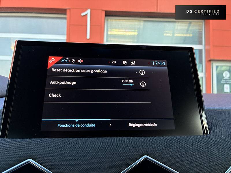 3 modes de conduite selectionnables: Normal, Sport, Eco / ABS avec répartiteur électronique de freinage (REF) et Aide au Freinage d'Urgence (AFU) / Airbags frontaux aux places AV avec désactivation par clé de l'airbag passager / Airbags latéraux de type "thorax" aux places AV et AR / Alerte de survitesse / Allumage automatique des feux de détresse en cas de forte décélération / Antenne radio invisible / Banquette AR 2/3 - 1/3 avec 3 appuie-tête / Câble de recharge mode 3 triphasé 22 kW / Calandre surmontée de l'emblème E-TENSE / Chargeur embarqué de 11 kW / Clignotants impulsionnels 3 coups / Combiné numérique / Contrôle de traction intelligent / Contrôle dynamique de stabilité (ESP) avec antipatinage des roues (ASR) / Coques de rétroviseurs extérieurs Noir Mat / Crochet d'arrimage dans le coffre / Démarrage Mains-Libres avec bouton de démarrage à pulsation / Détection de sous-gonflage / DS Wings chromées / Eclairage d'accompagnement / Eclairage d'accueil automatique / Eclairage de boîte à gants, d'accoudoir central AV et de coffre à LED / Eclaireur de coffre / Essuie-vitre AR avec intermittence indexée à la marche AR / Facade centrale a commandes sensitives / Feux AR halogène / Feux STOP à LED (3e feu) / Filtre à pollen / Fixations ISOFIX à la place passager AV et aux places latérales AR / Freinage d'urgence automatique jusqu'à 85 km/h / Freinage Régénératif permettant une meilleure récupération d'energie lors des phases de décélération / Frein de stationnement électrique automatique / Grille de calandre Noir Mat / Guide utilisateur numérique / Indicateur de rapports engagés / Intérieur Tissu Météorite / Jonc sur volet Noir Brillant signé CROSSBACK et paupières Noir Brillant avec logo DS / Lève-vitres AV et AR électriques et séquentiels, avec antipincement sur la vitre conducteur / Menu spécifique E-TENSE dans l´écran tactile 10,3" pour optimiser les performances énergétiques / Mirror Screen / Pare-brise teinté et acoustique / Pare-soleil avec miroir de courtoisie / Pieds de rétroviseurs extérieurs couleur carrosserie / Plafonnier à lampes / Poignées de maintien aux places AV / Poignées de portes affleurantes / Poignées d'ouverture de portes intérieures Chromées / Pommeau de levier de vitesse avec embossage intégrant l'emblème E-TENSE / Pompe à chaleur / Porte-gobelets à l' AV / Portières avec lécheurs de vitres invisibles / Réhausse manuelle de siège conducteur / Rehausse manuelle du siège passager / Rétroviseur intérieur électrochrome sans cadre / Services Pack Navigation 3 ANS INCLUS à l'achat du véhicule: information trafic en temps réel grâce au service TomTom Traffic, conditions météorologiques, prix des carburants, disponibilité et tarifs des parkings, Zones de Danger / Sièges AV réglables en longueur / Signature E-TENSE sur le hayon / SOS & Assistance / Système audio sur tablette tactile 7'' avec Mirror Screen et radio numérique / Système sonore polyphonique à 8 HP / Témoin et alerte sonore de non-bouclage des ceintures de sécurité AV/AR / Trappe de recharge côté gauche / Verrouillage automatique des portes en roulant / Verrou sur porte conducteur