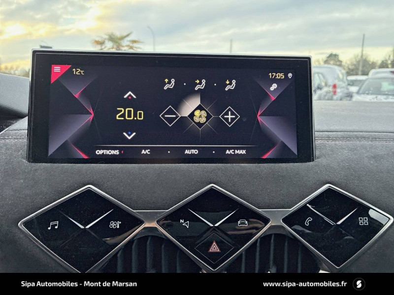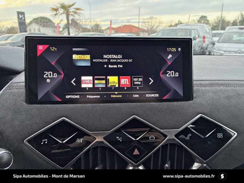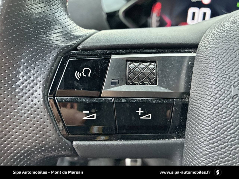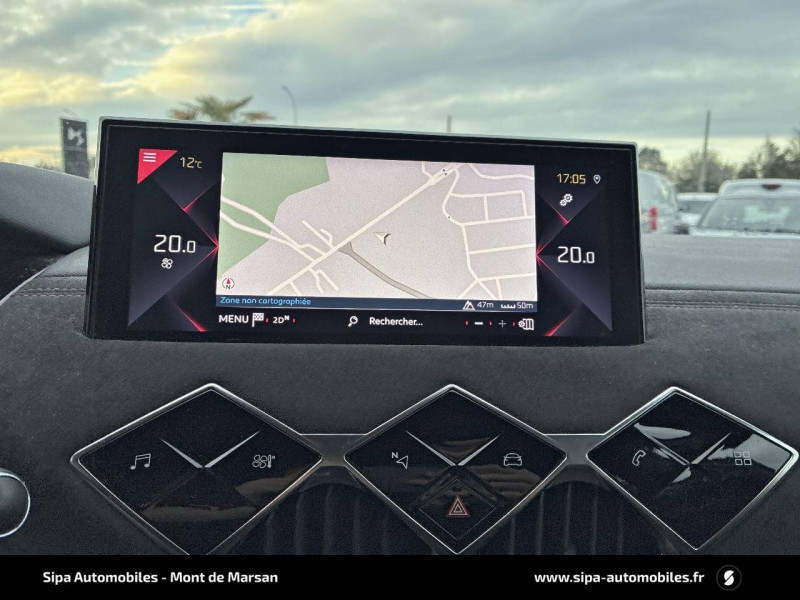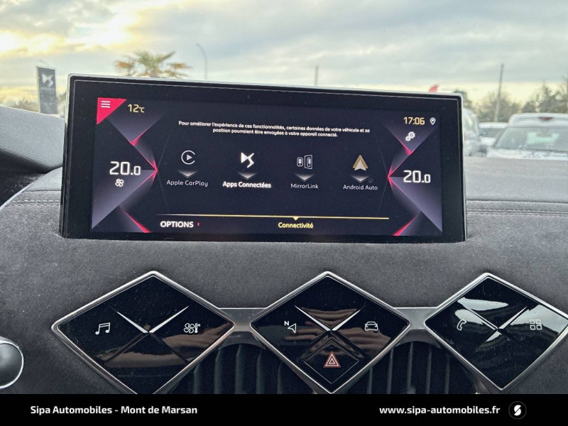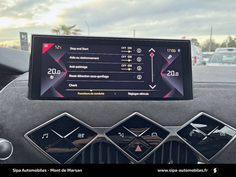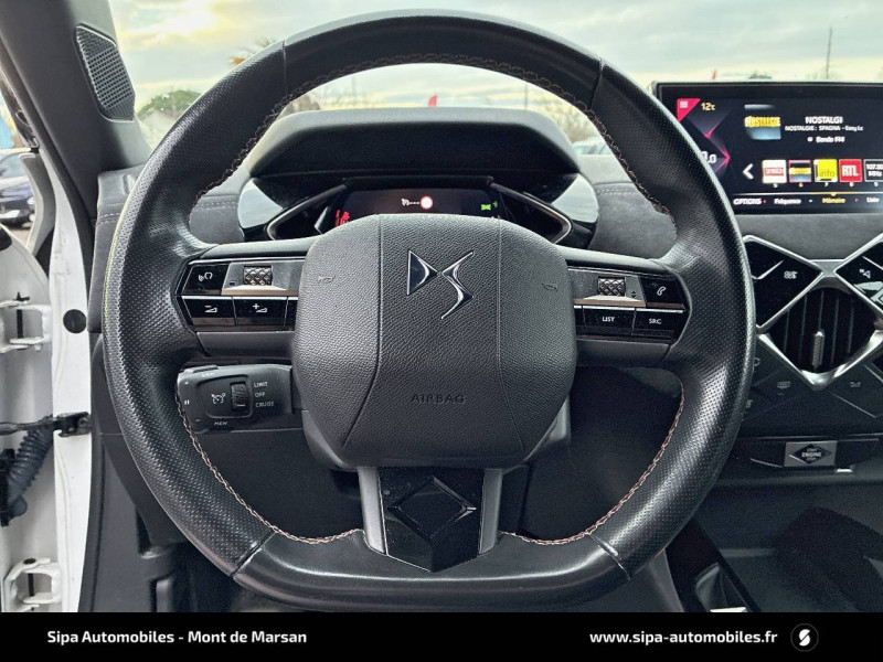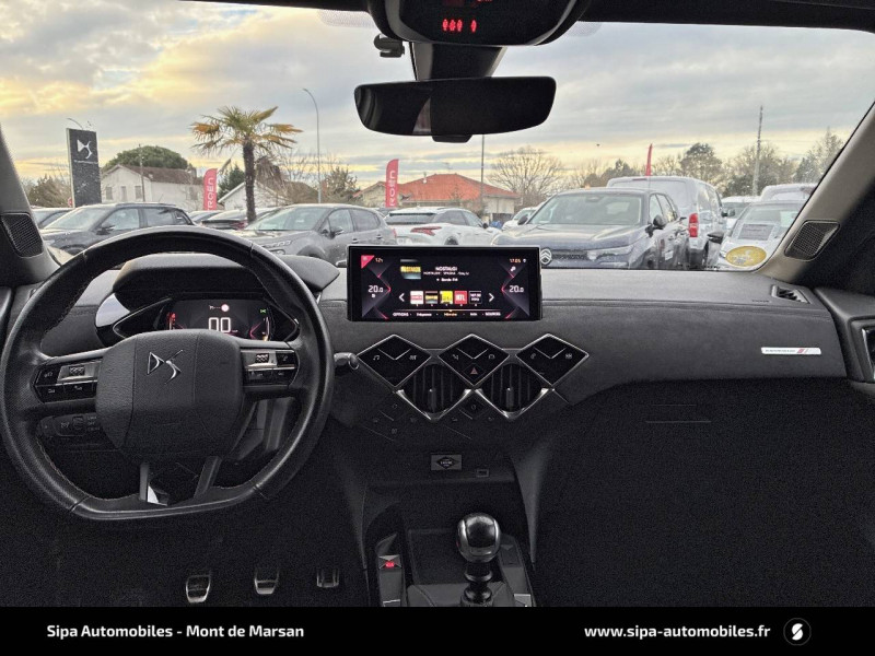 ABS, AFU, ESP, REF / ADML PROXIMITY avec DS CONNECT BOX / Airbags frontaux, latéraux et rideaux aux places AV et rideaux aux places AR / Alerte de survitesse / Antenne radio invisible / Aumônières de dos sur les sièges AV / Badge de planche de bord "DS PERFORMANCE Line" / Clignotants impulsionnels 3 coups / Combiné numérique / Contrôle de traction intelligent / Contrôle dynamique de stabilité (ESP) avec antipatinage des roues (ASR) / Crochet d'arrimage dans le coffre au dessus du plancher de coffre x4 / Démarrage Mains-Libres avec bouton de démarrage à pulsation / Détection de sous-gonflage / DS CONNECT NAV avec Mirror Screen / DS MATRIX LED VISION / Eclairage d'accompagnement / Eclairage d'accueil automatique / Eclaireur de coffre / Essuie-vitre AR avec intermittence indexée à la marche AR / Essuie-vitre AV à déclenchement et cadencement automatiques / Feux STOP à LED (3e feu) / Filtre à charbon actif / Fixations ISOFIX à la place passager AV et aux places latérales AR / Freinage d'urgence automatique jusqu'à 85 km/h / Frein de stationnement électrique / Guide utilisateur numérique / Indicateur de changement de rapport / Inspiration DS PERFORMANCE Line / Lève-vitres AV/AR électriques, séquentiels et antipincement / Mirror Screen / Ouverture et fermeture des vitres à distance / Pare-brise teinté et acoustique / Pare-soleil avec miroir de courtoisie et éclairage à LED / Pédalier alu / Poignées de maintien aux places AV / Poignées de portes affleurantes / Poignées de portes affleurantes ouverture à l'approche / Porte-gobelets à l' AV / Rétroviseur intérieur électrochrome sans cadre / Sièges AV réglables en longueur / Système audio sur tablette tactile 10,3" HD à 8 HP avec prise USB et Bluetooth / Système sonore polyphonique / Témoin et alerte sonore de non-bouclage des ceintures de sécurité AV/AR / Verrouillage automatique des portes en roulant / Verrou sur porte conducteur