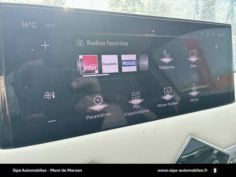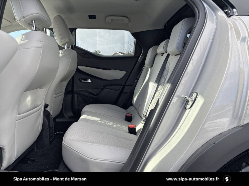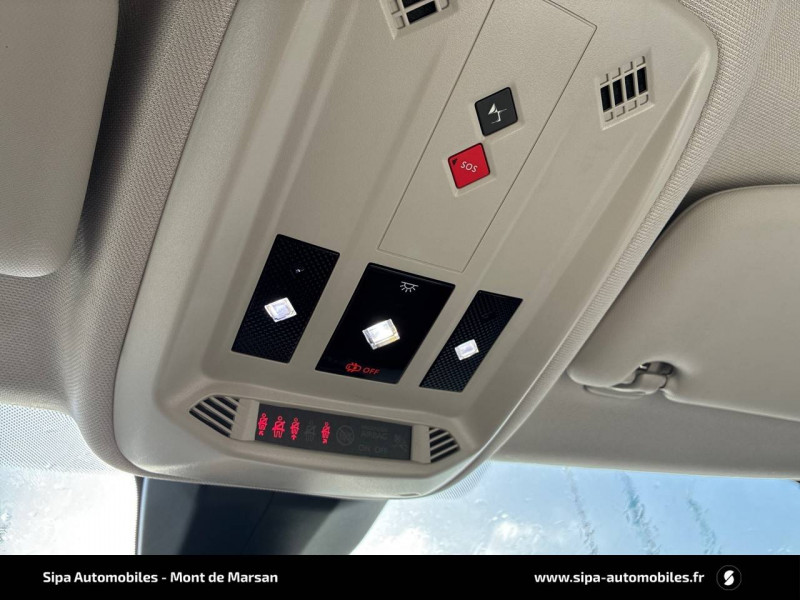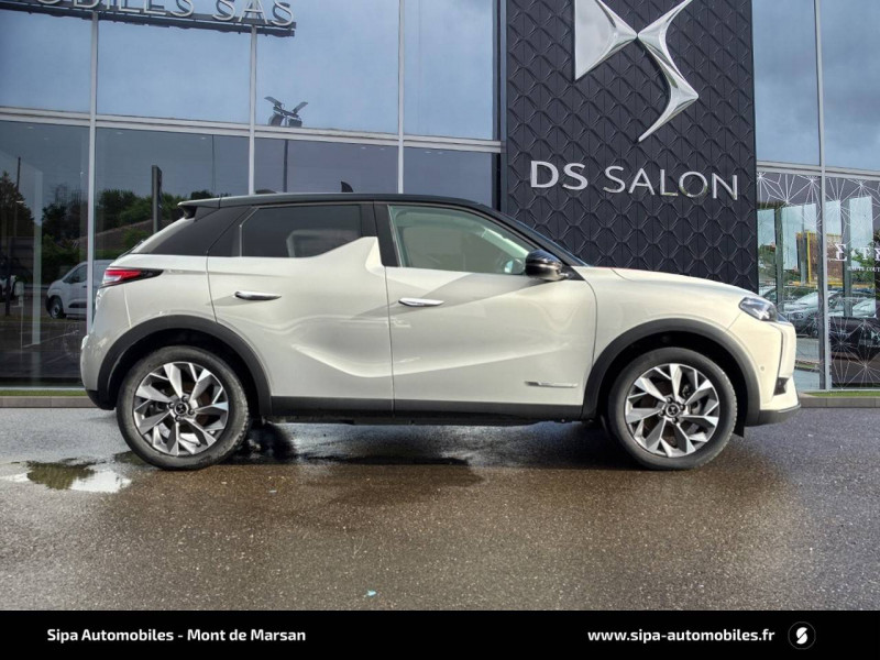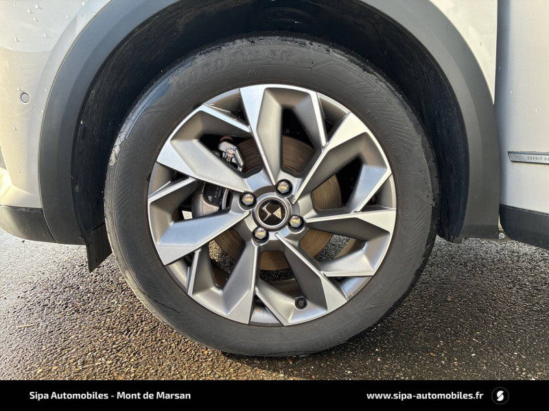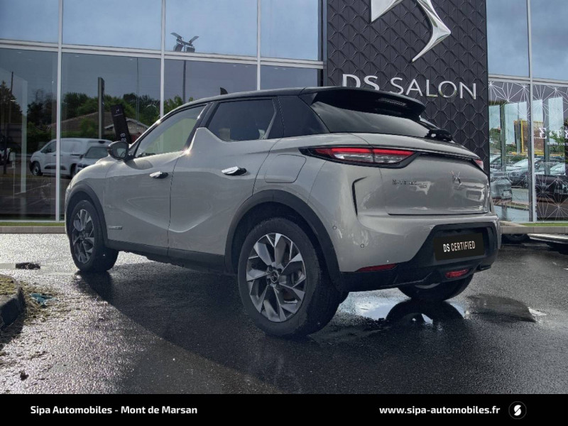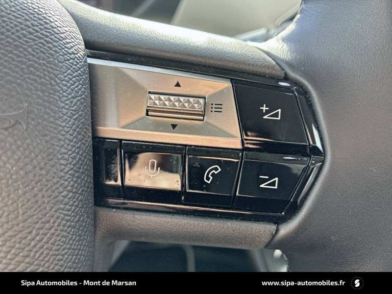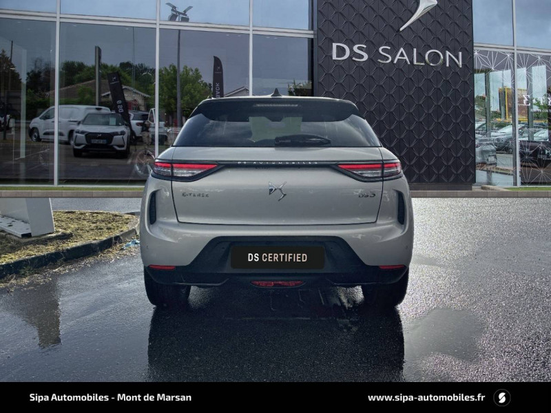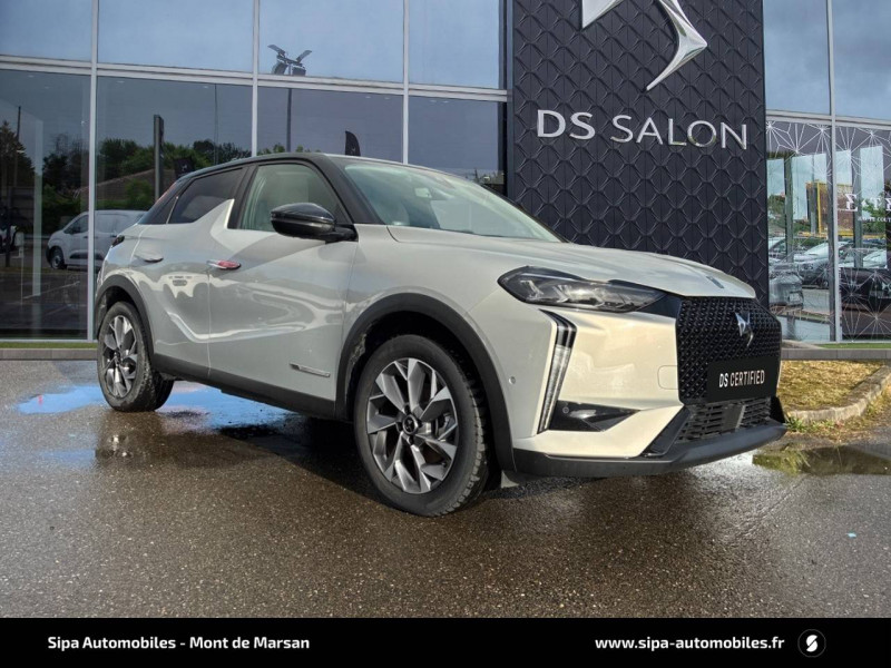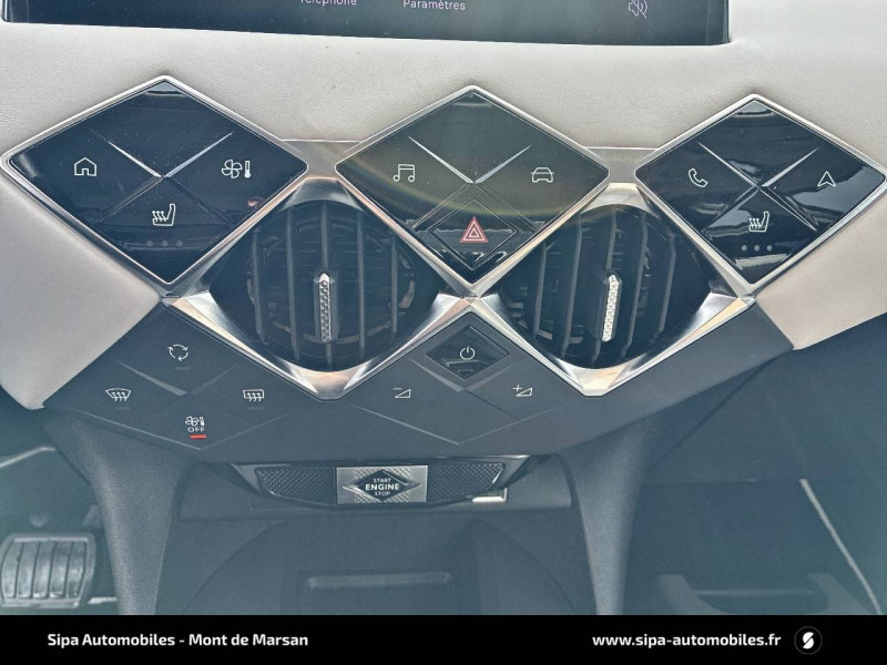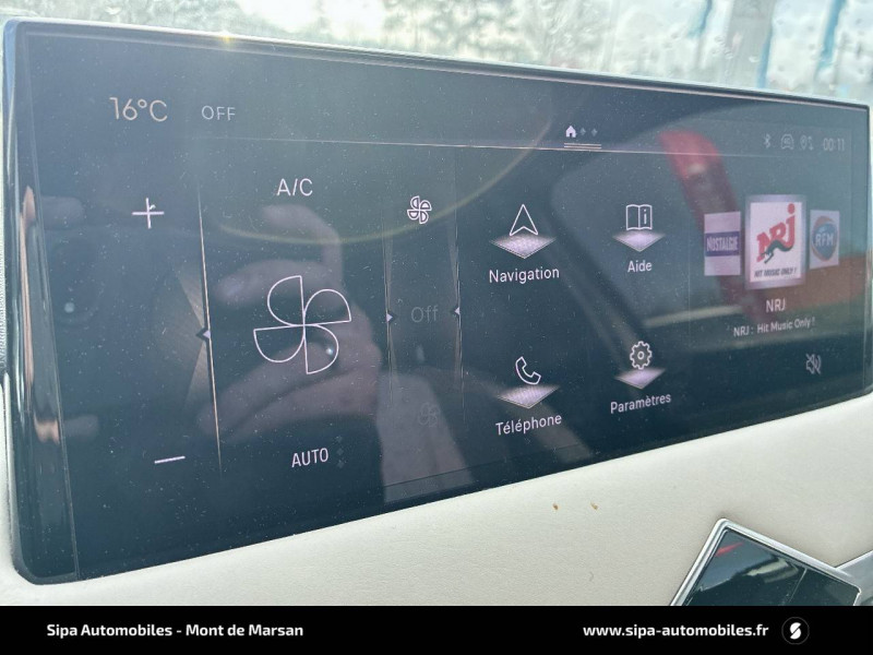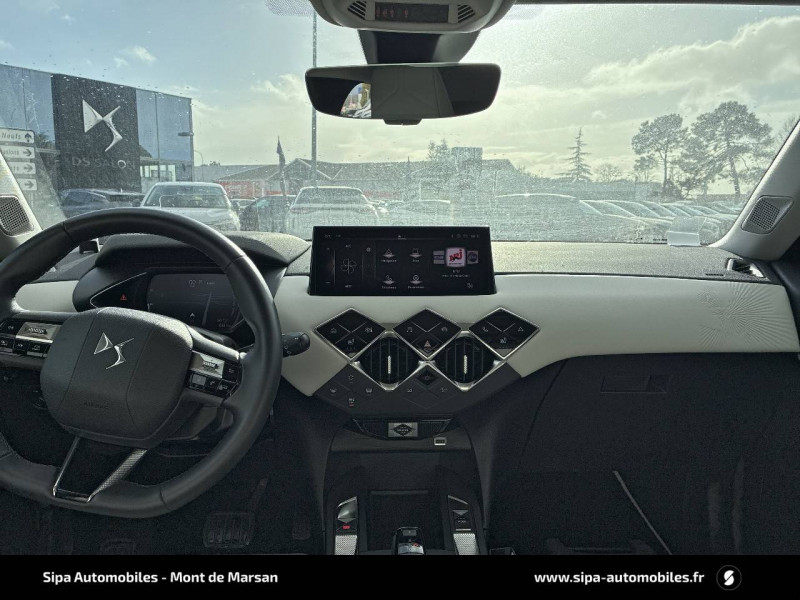 ABS avec répartiteur électronique de freinage (REF) et Aide au Freinage d'Urgence (AFU) et ESP + Aide au démarrage en pente / Accès et démarrage mains libres Proximity / Airbags frontaux (passager déconnectable), latéraux AV et AR, rideaux AV et AR / Badge DS sur le capot et et Logo DS sur la calandre Chromés / Câble de recharge mode 3 monophasé 7,2 kW / Centre de roue Noir / Charge rapide via courant continu jusqu'à 100 kW / Chargeur embarqué monophasé de 7,4 kW / Combiné numérique / Contrôle dynamique de stabilité (ESP) avec antipatinage des roues (ASR) / Coques de rétroviseurs avec gravage laser / Détection de sous-gonflage / DS IRIS SYSTEM avec Navigation 3D Connectée DS IRIS System intègre la Navigation Connectée (information trafic en temps réel, zone de danger, localisation des stations services avec prix des carburants et bornes de recharge électrique), et la reconnaissance vocale naturelle. Services inclus dans le Pack Connect Plus pour 3 ans avec l'achat de votre véhicule. / DS Wings chromées / Eclairage d'accueil et d'accompagnement / Eclairage de cave à pieds à LED / Ecran tactile capacitif 10,3" HD / Essuie-vitre AV à déclenchement et cadencement automatiques / Fixations ISOFIX à la place passager AV et aux places latérales AR / Freinage d'urgence automatique piloté par caméra / Frein de stationnement électrique automatique / Grille de calandre noir brillant avec pampilles chromées / Intérieur Tissu Luxembourg avec cuir Nappa Gris Galet / Jonc supérieur de volet Noir brillant avec lettrage 'DS AUTOMOBILES' en acier inoxydable / Kit de dépannage provisoire de pneumatiques / Lécheurs de vitres invisibles / Lève-vitres AV et AR électriques et séquentiels Antipincement côté conducteur et sécurité enfant / Mirror Screen sans fil via Wifi / Monogrammes AR chromé / Pack connect plus services supplémentaires pour une expérience de conduite connectée optimale / Pare-brise teinté et acoustique / Pare-soleils avec miroirs de courtoisie occultables éclairés à LED / Poignées de portes affleurantes / Pompe à chaleur / Préconditionnement thermique de l'habitacle programmable par smartphone Via MyDS App / Prise USB Data à l'AV / Réhausse manuelle de siège conducteur / Réhausse manuelle du siège passager / Rétroviseur intérieur électrochrome sans cadre / Rétroviseurs extérieurs avec embase et coque noir brillant / Sièges AV confort Avec poche aumonière / SOS & Assistance Service inclus pendant 10 ans / Surtapis AV/AR / Teinte Caisse opaque Blanc Banquise