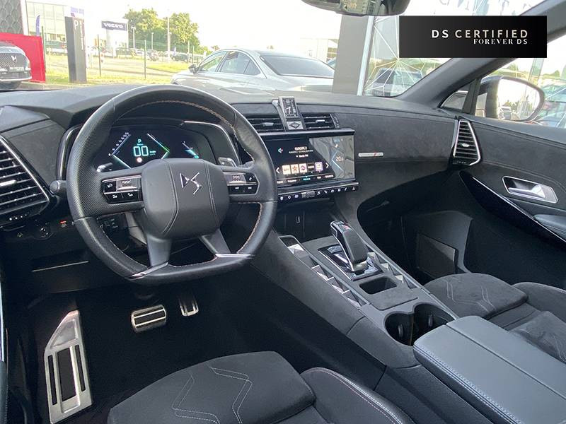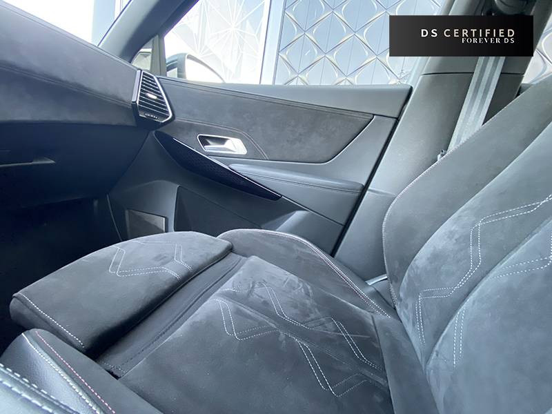 ABS avec répartiteur électronique de freinage (REF) et Aide au Freinage d'Urgence (AFU) / ADML PROXIMITY Accès et démarrage Mains-Libres ave déverrouillage et déploiement automatique des poignées de portes affleurantes à l'approche du véhicule / Airbags frontaux aux places AV avec désactivation par clé de l'airbag passager / Airbags latéraux de type "thorax" aux places AV et AR / Alerte de survitesse / Allumage automatique des feux de détresse en cas de forte décélération / Antenne radio invisible / Badge de planche de bord "DS PERFORMANCE Line" / Badges latéraux sur portes AV PERFORMANCE Line / Banquette AR 2/3 - 1/3 avec 3 appuie-tête / Centre de roue Carmin / Clignotants impulsionnels 3 coups / Combiné numérique / Contrôle de traction intelligent / Contrôle dynamique de stabilité (ESP) avec antipatinage des roues (ASR) / Crochet d'arrimage dans le coffre / Démarrage Mains-Libres avec bouton de démarrage à pulsation / Détection de sous-gonflage / Double canule d'échappement chromée / DS MATRIX LED VISION / DS Sensorial Drive / DS Wings Noir pailleté texturé / Eclairage d'accompagnement / Eclairage d'accueil automatique / Eclairage de boîte à gants, d'accoudoir central AV et de coffre à LED / Eclaireur de coffre / Essuie-vitre AR avec intermittence indexée à la marche AR / Essuie-vitre AV à déclenchement et cadencement automatiques / Facade centrale a commandes sensitives / Feux STOP à LED (3e feu) / Filtre à charbon actif / Fixations ISOFIX à la place passager AV et aux places latérales AR / Freinage d'urgence automatique jusqu'à 85 km/h / Frein de stationnement électrique automatique / Grille de calandre noir brillant / Guide utilisateur numérique / Indicateur de rapports engagés / Intérieur Tissu tressé Basalte avec Alcantara PERFORMANCE Line / Jonc sur volet Noir Brillant signé CROSSBACK et paupières Noir pailleté texturé avec logo DS / Lève-vitres AV et AR électriques et séquentiels, avec antipincement sur la vitre conducteur / Mirror Screen / Navigation avec Mirror Screen et radio numérique / Pare-brise teinté et acoustique / Pédalier alu / Pieds de rétroviseurs extérieurs couleur carrosserie / Poignées de maintien aux places AV / Poignées de portes affleurantes / Poignées de portes affleurantes ouverture à l'approche / Poignées d'ouverture de portes intérieures Chromées / Porte-gobelets à l' AV / Portières avec lécheurs de vitres invisibles / Prise USB Data à l'AV / Reconnaissance vocale / Réhausse manuelle de siège conducteur / Rehausse manuelle du siège passager / Rétroviseur intérieur électrochrome sans cadre / Services Pack Navigation 3 ANS INCLUS à l'achat du véhicule: information trafic en temps réel grâce au service TomTom Traffic, conditions météorologiques, prix des carburants, disponibilité et tarifs des parkings, Zones de Danger / Seuils de porte AV DS PERFORMANCE Line / Seuils de portes AV en métal chromé / Sièges AV réglables en longueur / SOS & Assistance / Système audio sur tablette tactile 10,3" HD à 8 HP avec prise USB et Bluetooth / Système sonore polyphonique à 8 HP / Témoin et alerte sonore de non-bouclage des ceintures de sécurité AV/AR / Verrouillage automatique des portes en roulant / Verrou sur porte conducteur / Zone De Danger