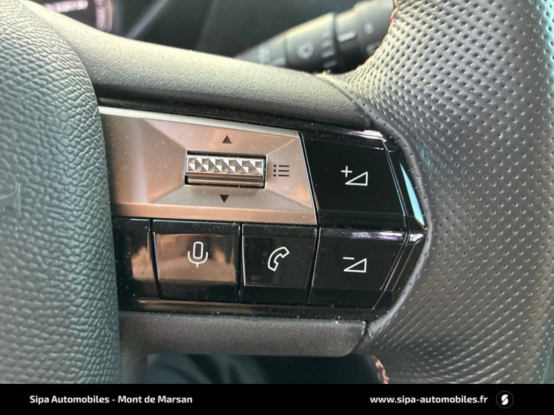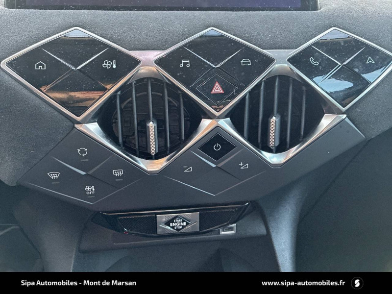 ABS avec répartiteur électronique de freinage (REF) et Aide au Freinage d'Urgence (AFU) et ESP + Aide au démarrage en pente / Airbags frontaux (passager déconnectable), latéraux AV et AR, rideaux AV et AR / Application MyDS / Badge DS sur le capot et et Logo DS sur la calandre Logo DS Noir mat texturé / Câble de recharge mode 3 monophasé 7,2 kW / Centre de roue Carmin / Charge rapide via courant continu jusqu'à 100 kW / Chargeur embarqué monophasé de 7,4 kW / Combiné numérique / Contrôle dynamique de stabilité (ESP) avec antipatinage des roues (ASR) / Détection de sous-gonflage / DS Wings Noir Brillant / Eclairage d'accueil et d'accompagnement / Eclairage de cave à pieds à LED / Ecran tactile capacitif 10,3" HD / Enjoliveur de feux AR noir brillant / Essuie-vitre AV à déclenchement et cadencement automatiques / Feux AR halogène / Fixations ISOFIX à la place passager AV et aux places latérales AR / Freinage d'urgence automatique piloté par caméra / Frein de stationnement électrique automatique / Grille de calandre noir brillant avec pampilles noir brillant / Intérieur Tissu tressé Basalte avec Alcantara / Jonc supérieur de volet Noir brillant avec lettrage 'DS AUTOMOBILES' en acier inoxydable / Kit de dépannage provisoire de pneumatiques / Lécheurs de vitres invisibles / Lève-vitres AV et AR électriques et séquentiels Antipincement côté conducteur et sécurité enfant / Logo DS de calandre noir mat texturé / Mirror Screen sans fil via Wifi / Monogrammes AR noir brillant / Pack connect plus services supplémentaires pour une expérience de conduite connectée optimale / Pack d'équipements pour la Sécurité / Pare-brise teinté et acoustique / Pare-soleils avec miroirs de courtoisie occultables éclairés à LED / Poignées de portes affleurantes / Pompe à chaleur / Préconditionnement thermique de l'habitacle programmable par smartphone Via MyDS App / Prise USB Data à l'AV / Réhausse manuelle de siège conducteur / Réhausse manuelle du siège passager / Rétroviseur intérieur électrochrome sans cadre / Rétroviseurs extérieurs avec embase et coque noir brillant / Sièges AV confort Avec poche aumonière / SOS & Assistance Service inclus pendant 10 ans / Teinte Caisse opaque Blanc Banquise