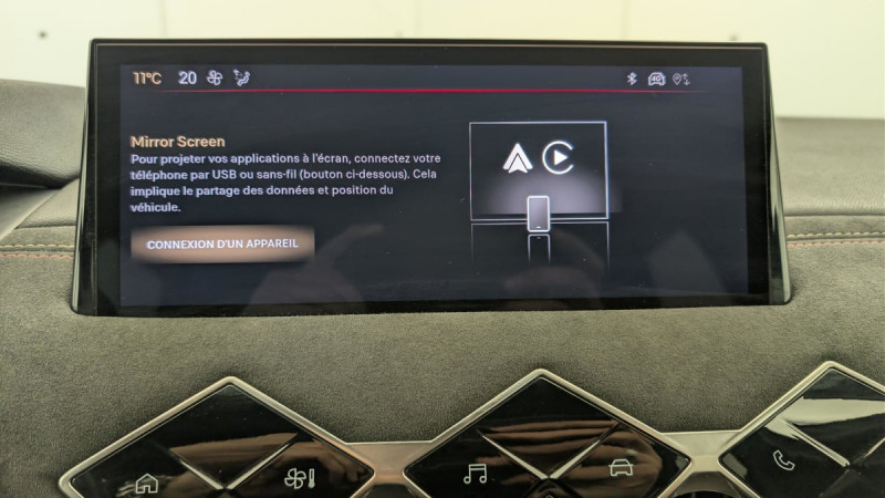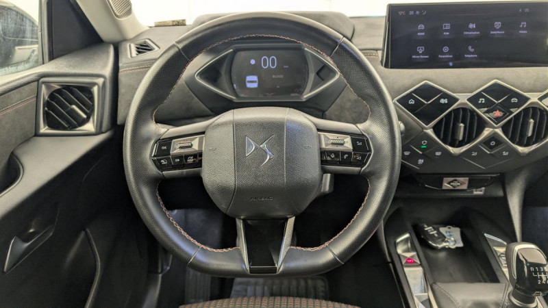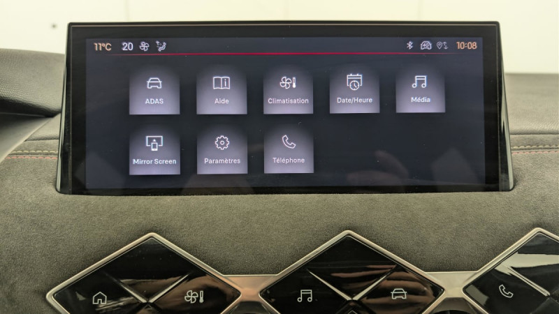 ABS, AFU, ESP, REF / Kit de dépannage provisoire de pneumatiques / Prise USB Data à l'AV / Fixations ISOFIX à la place passager AV et aux places latérales AR / Rétroviseur intérieur électrochrome sans cadre / Contrôle dynamique de stabilité (ESP) avec antipatinage des roues (ASR) / Combiné numérique / Détection de sous-gonflage / Essuie-vitre AV à déclenchement et cadencement automatiques / Réhausse manuelle de siège conducteur / Poignées de portes affleurantes / DS Wings Noir Brillant / Frein de stationnement électrique automatique / Freinage d'urgence automatique piloté par caméra / Eclairage d'accueil et d'accompagnement / Monogrammes AR noir brillant / Eclairage de cave à pieds à LED / Mirror Screen sans fil via Wifi Compatible Apple CarPlay et Android Auto / Airbags frontaux (passager déconnectable), latéraux AV et AR, rideaux AV et AR / Badge DS sur le capot et et Logo DS sur la calandre Logo DS Noir mat texturé / Ecran tactile capacitif 10,3" HD / Enjoliveur de feux AR noir brillant / Grille de calandre noir brillant avec pampilles noir brillant / Jonc supérieur de volet Noir brillant avec lettrage 'DS AUTOMOBILES' en acier inoxydable / Lève-vitres AV et AR électriques et séquentiels Antipincement côté conducteur et sécurité enfant / Lécheurs de vitres invisibles / Prédisposition usine pour roue de secours accessoire / Réhausse manuelle du siège passager / Rétroviseurs extérieurs avec embase et coque noir brillant / Sièges AV confort Avec poche aumonière / Pare-soleils avec miroirs de courtoisie occultables éclairés à LED / Logo DS de calandre noir mat texturé / Intérieur Tissu tressé Basalte avec Alcantara : Planche de bord Alcantara Noir Ciel de pavillon Gris Galet Volant Cuir fleur perforé et coutures Or et Carmin Décor Alcantara Noir Siège Tissu Tressé Basalte avec Alcantara /