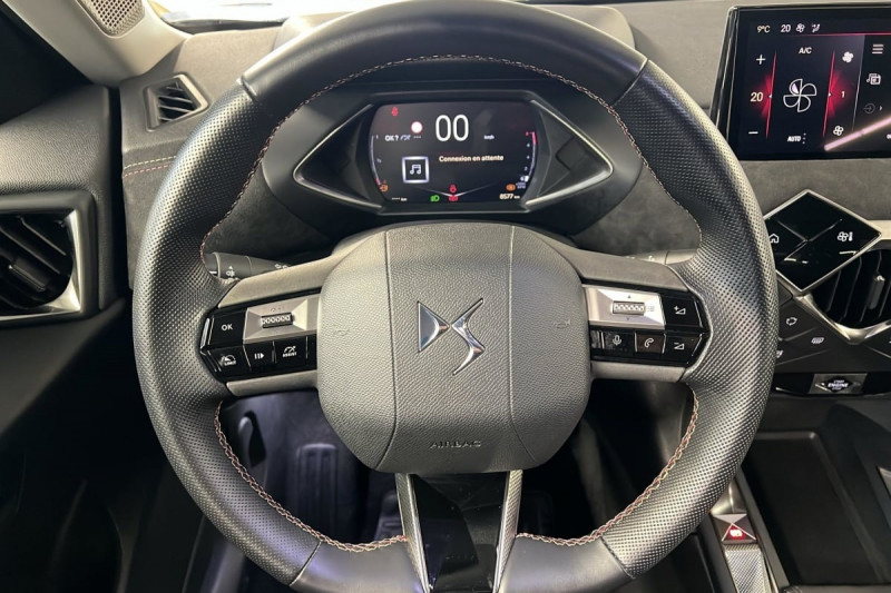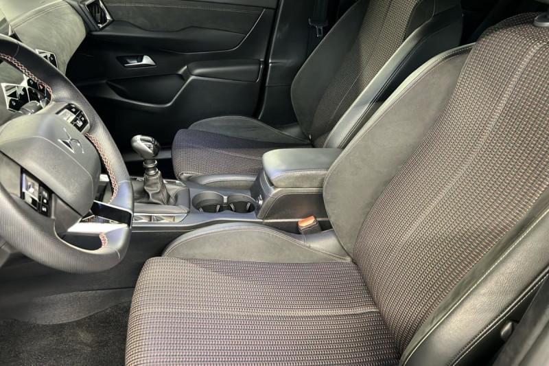 ABS, AFU, ESP, REF / Kit de dépannage provisoire de pneumatiques / Prise USB Data à l'AV / Fixations ISOFIX à la place passager AV et aux places latérales AR / Rétroviseur intérieur électrochrome sans cadre / Contrôle dynamique de stabilité (ESP) avec antipatinage des roues (ASR) / Combiné numérique / Détection de sous-gonflage / Essuie-vitre AV à déclenchement et cadencement automatiques / Réhausse manuelle de siège conducteur / Poignées de portes affleurantes / DS Wings Noir Brillant / Frein de stationnement électrique automatique / Freinage d'urgence automatique piloté par caméra / Eclairage d'accueil et d'accompagnement / Monogrammes AR noir brillant / Eclairage de cave à pieds à LED / Mirror Screen sans fil via Wifi Compatible Apple CarPlay et Android Auto / Airbags frontaux (passager déconnectable), latéraux AV et AR, rideaux AV et AR / Badge DS sur le capot et et Logo DS sur la calandre Logo DS Noir mat texturé / Ecran tactile capacitif 10,3" HD / Enjoliveur de feux AR noir brillant / Grille de calandre noir brillant avec pampilles noir brillant / Jonc supérieur de volet Noir brillant avec lettrage 'DS AUTOMOBILES' en acier inoxydable / Lève-vitres AV et AR électriques et séquentiels Antipincement côté conducteur et sécurité enfant / Lécheurs de vitres invisibles / Prédisposition usine pour roue de secours accessoire / Réhausse manuelle du siège passager / Rétroviseurs extérieurs avec embase et coque noir brillant / Sièges AV confort Avec poche aumonière / Pare-soleils avec miroirs de courtoisie occultables éclairés à LED / Logo DS de calandre noir mat texturé / Intérieur Tissu tressé Basalte avec Alcantara : Planche de bord Alcantara Noir Ciel de pavillon Gris Galet Volant Cuir fleur perforé et coutures Or et Carmin Décor Alcantara Noir Siège Tissu Tressé Basalte avec Alcantara /