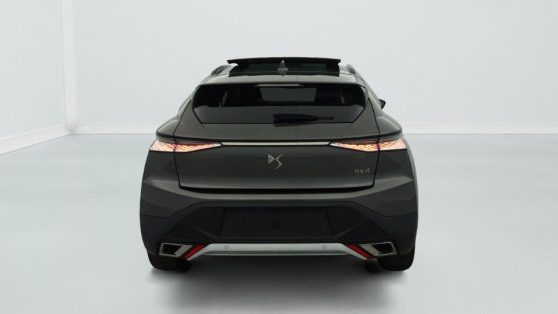 Kit de dépannage provisoire de pneumatiques / Frein de stationnement électrique automatique / Lève-vitres AV/AR électriques, séquentiels et antipincement / Freinage multi-collision / Rétroviseur intérieur électrochrome sans cadre / Alerte Attention Conducteur / Fixations ISOFIX à la place passager AV et aux places latérales AR / DS MATRIX LED VISION / Détection de sous-gonflage / Eclairage de boîte à gants, d'accoudoir central AV et de coffre à LED / Banquette AR 2/3 - 1/3 avec 3 appuie-tête / DS EXTENDED HEAD UP DISPLAY / DS IRIS SYSTEM / Avertisseur de risque de collision / Combiné numérique 7" / DS e-toggle (Sélecteur de vitesses) / Freinage d'urgence automatique piloté par caméra et radar / ABS avec répartiteur électronique de freinage (REF) et Aide au Freinage d'Urgence (AFU) / Pare-brise teinté acoustique / Eclairage de cave à pieds à LED / Eclairage d'ambiance à LED / Mirror Screen sans fil via Wifi Compatible Apple CarPlay et Android Auto / Essuie-vitre AV à déclenchement et cadencement automatiques + Buses de lavage / Accès et démarrage mains libres Proximity / Airbags frontaux (passager déconnectable), latéraux AV, rideaux aux places AV/AR et central entre les places AV / Console centrale avec rangement fermé / Contrôle dynamique de stabilité (ESP) avec antipatinage des roues (ASR) + Contrôle de stabilité de l'attelage / Feux AR Full LED effet 3D avec traitement écailles / DS Drive Assist et Pack Détection Trafic AR : Adaptive Cruise Controle Stop & Go Surveillance d'angles morts longue distance Alerte de Trafic AR Freinage d'urgence automatique piloté par caméra et radar / Pare-soleil avec miroirs de courtoisie occultables éclairés à LED / Prises 12 V 1 prise AV et 1 prise dans le coffre / Prises USB 1 prise USB-C sous l'accoudoir central AV, 1 prise USB-C dans la console et 2 prises USB-C pour les passagers AR / Radio numérique terrestre (DAB) Inclut le Bluetooth / Ecran tactile capacitif 10" HD / Intérieur Cuir grainé Noir Basalte : Sellerie en Cuir grainé Noir Basalte Décors de panneaux de porte Chrome guilloché Volant en cuir fleur Mistral Console centrale en Toile DS Mistral Planche de bord en toile DS Noir Basalte façon écaille Panneaux de portes en toile DS Noir Basalte façon écaille Ciel de pavillon Salin /