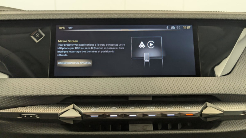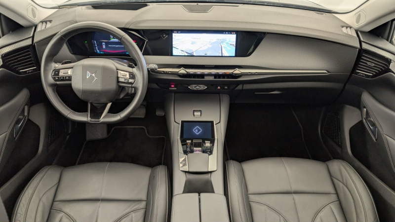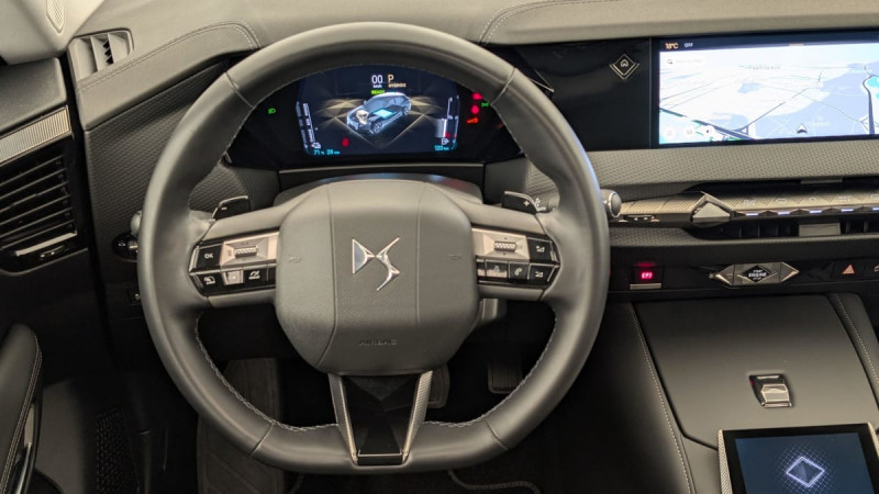 Kit de dépannage provisoire de pneumatiques / Frein de stationnement électrique automatique / Lève-vitres AV/AR électriques, séquentiels et antipincement / Rétroviseur intérieur électrochrome sans cadre / Fixations ISOFIX à la place passager AV et aux places latérales AR / DS MATRIX LED VISION / Détection de sous-gonflage / Banquette AR 2/3 - 1/3 avec 3 appuie-tête / SOS / DS IRIS SYSTEM / Avertisseur de risque de collision / Combiné numérique 7" / DS e-toggle (Sélecteur de vitesses) / Freinage d'urgence automatique piloté par caméra et radar / ABS avec répartiteur électronique de freinage (REF) et Aide au Freinage d'Urgence (AFU) + Aide au démarrage en pente / Pare-brise teinté acoustique / Eclairage de cave à pieds à LED / Eclairage d'ambiance à LED / Mirror Screen sans fil via Wifi Compatible Apple CarPlay et Android Auto / Essuie-vitre AV à déclenchement et cadencement automatiques + Buses de lavage / Accès et démarrage mains libres Proximity / Aide au stationnement AV et AR et Caméra de recul / Airbags frontaux (passager déconnectable), latéraux AV, rideaux aux places AV/AR et central entre les places AV / Contrôle dynamique de stabilité (ESP) avec antipatinage des roues (ASR) + Contrôle de stabilité de l'attelage / Feux AR Full LED effet 3D avec traitement écailles / Pare-soleil avec miroirs de courtoisie occultables éclairés à LED / Radio numérique terrestre (DAB) Inclut le Bluetooth / Rétroviseurs extérieurs électriques, dégivrants, rabattables électriquement Avec éclairage d'accueil / Ecran tactile capacitif 10" HD / Clean Cabin avec Air Quality System / DS Drive Assist et Pack Détection Trafic AR : Surveillance d'angles morts longue distance Alerte de Trafic AR / DS EXTENDED HEAD UP DISPLAY Affichage tete haute étendu / Intérieur Cuir grainé Noir Basalte et Toile DS : Ciel de pavillon clair Décors de panneaux de porte Chrome guilloché Volant en cuir fleur Mistral Console centrale en Toile DS Mistral Planche de bord en toile DS Noir Basalte façon écaille Panneaux de portes en toile DS Noir Basalte façon écaille Sellerie en Cuir grainé Noir Basalte et Toile DS / Pack Sièges mécaniques avec réglages lombaires conducteur et passager /
