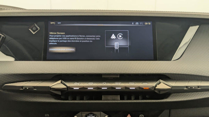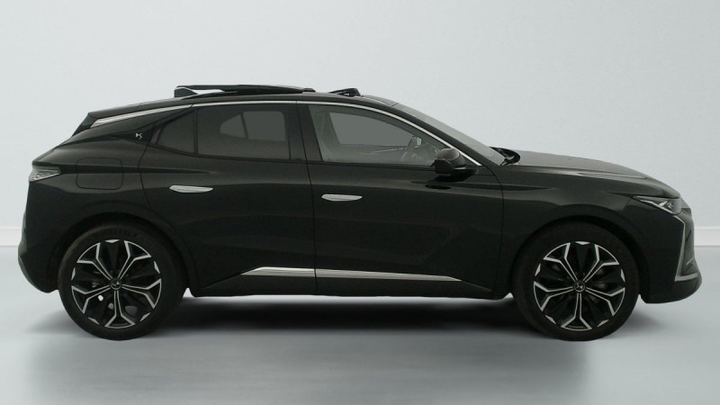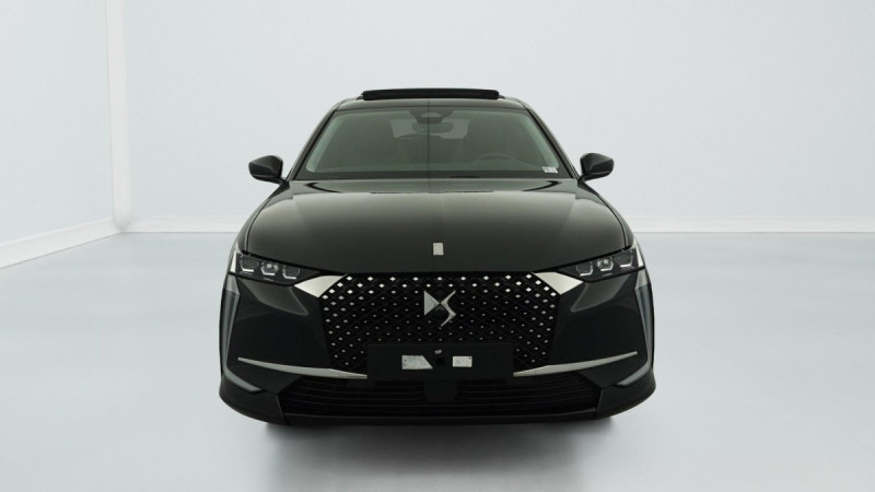 Kit de dépannage provisoire de pneumatiques / Frein de stationnement électrique automatique / Lève-vitres AV/AR électriques, séquentiels et antipincement / Freinage multi-collision / Rétroviseur intérieur électrochrome sans cadre / Alerte Attention Conducteur / Fixations ISOFIX à la place passager AV et aux places latérales AR / Vérins d'ouverture et de maintien du capot moteur / DS MATRIX LED VISION / Détection de sous-gonflage / Eclairage de boîte à gants, d'accoudoir central AV et de coffre à LED / Banquette AR 2/3 - 1/3 avec 3 appuie-tête / SOS / Banquette AR avec trappe à skis / DS IRIS SYSTEM / Avertisseur de risque de collision / Combiné numérique 7" / DS e-toggle (Sélecteur de vitesses) / Enjoliveurs supérieurs des vitres latérales chromés / Freinage d'urgence automatique piloté par caméra et radar / ABS avec répartiteur électronique de freinage (REF) et Aide au Freinage d'Urgence (AFU) + Aide au démarrage en pente / Grille de calandre noir brillant avec pampilles chromées / Eclairage de cave à pieds à LED / Eclairage d'ambiance à LED / Mirror Screen sans fil via Wifi Compatible Apple CarPlay et Android Auto / Essuie-vitre AV à déclenchement et cadencement automatiques / Accès et démarrage mains libres Proximity / Aide au stationnement AV et AR et Caméra de recul / Accoudoir central AR avec trappe à ski et 2 porte-gobelets / Airbags frontaux (passager déconnectable), latéraux AV, rideaux aux places AV/AR et central entre les places AV / Antenne "aileron de requin" / Contrôle dynamique de stabilité (ESP) avec antipatinage des roues (ASR) + Contrôle de stabilité de l'attelage / Diffuseur AR noir brillant avec décors d'échappement chromé / Feux AR Full LED effet 3D avec traitement écailles / Jonc de volet chromé / Pare-soleil avec miroirs de courtoisie occultables éclairés à LED / Prises 12 V 1 prise AV et 1 prise dans le coffre / Prises USB 1 prise USB-C sous l'accoudoir central AV, 1 prise USB-C dans la console et 2 prises USB-C pour les passagers AR / Radio numérique terrestre (DAB) Inclut le Bluetooth / Rétroviseurs extérieurs électriques, dégivrants, rabattables électriquement Avec éclairage d'accueil / Poignées extérieures affleurantes chromées / Ecran tactile capacitif 10" HD / Clean Cabin avec Air Quality System / DS Drive Assist et Pack Détection Trafic AR :  Surveillance d'angles morts longue distance Alerte de Trafic AR / DS EXTENDED HEAD UP DISPLAY Affichage tete haute étendu / Intérieur Cuir grainé Noir Basalte et Toile DS :  Ciel de pavillon clair Décors de panneaux de porte Chrome guilloché Volant en cuir fleur Mistral Console centrale en Toile DS Mistral Planche de bord en toile DS Noir Basalte façon écaille Panneaux de portes en toile DS Noir Basalte façon écaille Sellerie en Cuir grainé Noir Basalte et Toile DS / Plafonnier I-Dome /