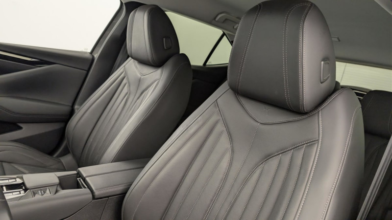 Kit de dépannage provisoire de pneumatiques / Frein de stationnement électrique automatique / Lève-vitres AV/AR électriques, séquentiels et antipincement / Rétroviseur intérieur électrochrome sans cadre / Fixations ISOFIX à la place passager AV et aux places latérales AR / DS MATRIX LED VISION / Détection de sous-gonflage / Eclairage de boîte à gants, d'accoudoir central AV et de coffre à LED / Banquette AR 2/3 - 1/3 avec 3 appuie-tête / SOS / DS IRIS SYSTEM / Avertisseur de risque de collision / Combiné numérique 7" / DS e-toggle (Sélecteur de vitesses) / Freinage d'urgence automatique piloté par caméra et radar / ABS avec répartiteur électronique de freinage (REF) et Aide au Freinage d'Urgence (AFU) + Aide au démarrage en pente / Pare-brise teinté acoustique / Eclairage de cave à pieds à LED / Eclairage d'ambiance à LED / Mirror Screen sans fil via Wifi Compatible Apple CarPlay et Android Auto / Essuie-vitre AV à déclenchement et cadencement automatiques + Buses de lavage / Accès et démarrage mains libres Proximity / Aide au stationnement AV et AR et Caméra de recul / Airbags frontaux (passager déconnectable), latéraux AV, rideaux aux places AV/AR et central entre les places AV / Antenne "aileron de requin" / Console centrale avec rangement fermé / Contrôle dynamique de stabilité (ESP) avec antipatinage des roues (ASR) + Contrôle de stabilité de l'attelage / Feux AR Full LED effet 3D avec traitement écailles / Pare-soleil avec miroirs de courtoisie occultables éclairés à LED / Radio numérique terrestre (DAB) Inclut le Bluetooth / Rétroviseurs extérieurs électriques, dégivrants, rabattables électriquement Avec éclairage d'accueil / Ecran tactile capacitif 10" HD / DS Drive Assist et Pack Détection Trafic AR : Surveillance d'angles morts longue distance Alerte de Trafic AR / DS EXTENDED HEAD UP DISPLAY Affichage tete haute étendu / Intérieur Cuir grainé Noir Basalte et Toile DS : Ciel de pavillon clair Décors de panneaux de porte Chrome guilloché Volant en cuir fleur Mistral Console centrale en Toile DS Mistral Planche de bord en toile DS Noir Basalte façon écaille Panneaux de portes en toile DS Noir Basalte façon écaille Sellerie en Cuir grainé Noir Basalte et Toile DS / Pack Sièges mécaniques avec réglages lombaires conducteur et passager /