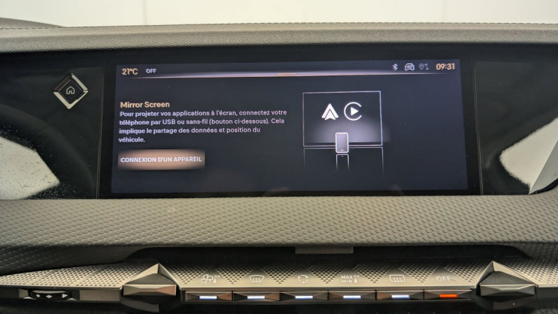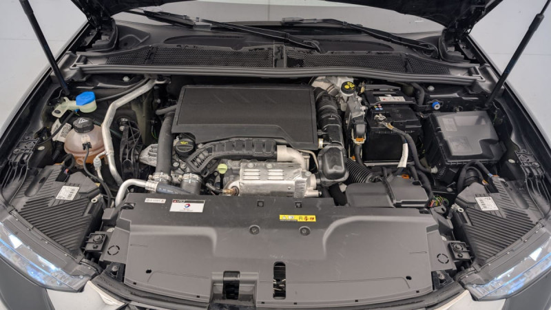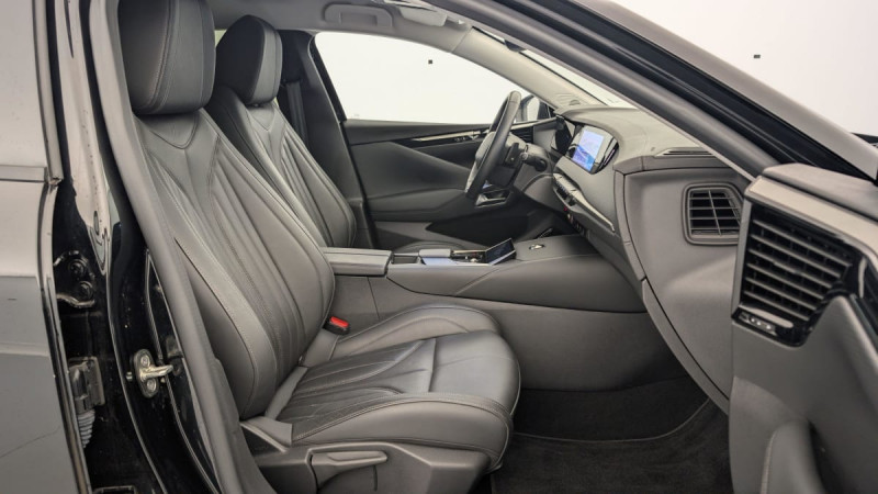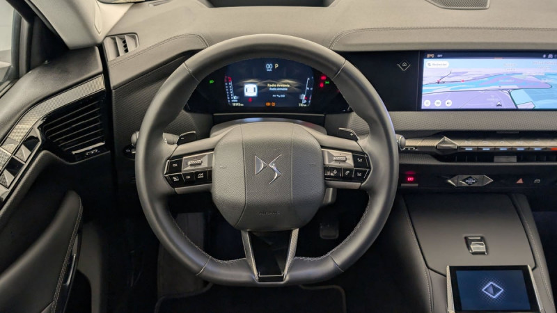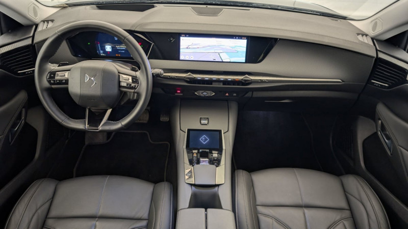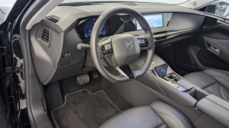 Kit de dépannage provisoire de pneumatiques / Frein de stationnement électrique automatique / Lève-vitres AV/AR électriques, séquentiels et antipincement / Rétroviseur intérieur électrochrome sans cadre / Alerte Attention Conducteur / Fixations ISOFIX à la place passager AV et aux places latérales AR / DS MATRIX LED VISION / Détection de sous-gonflage / Eclairage de boîte à gants, d'accoudoir central AV et de coffre à LED / Banquette AR 2/3 - 1/3 avec 3 appuie-tête / DS IRIS SYSTEM / Avertisseur de risque de collision / Combiné numérique 7" / DS e-toggle (Sélecteur de vitesses) / Freinage d'urgence automatique piloté par caméra et radar / ABS avec répartiteur électronique de freinage (REF) et Aide au Freinage d'Urgence (AFU) + Aide au démarrage en pente / Pare-brise teinté acoustique / Eclairage de cave à pieds à LED / Eclairage d'ambiance à LED / Mirror Screen sans fil via Wifi Compatible Apple CarPlay et Android Auto / Essuie-vitre AV à déclenchement et cadencement automatiques + Buses de lavage / Accès et démarrage mains libres Proximity / Aide au stationnement AV et AR et Caméra de recul / Accoudoir central AR avec trappe à ski et 2 porte-gobelets / Airbags frontaux (passager déconnectable), latéraux AV, rideaux aux places AV/AR et central entre les places AV / Feux AR Full LED effet 3D avec traitement écailles / Radio numérique terrestre (DAB) Inclut le Bluetooth / Rétroviseurs extérieurs électriques, dégivrants, rabattables électriquement Avec éclairage d'accueil / Ecran tactile capacitif 10" HD / DS Drive Assist et Pack Détection Trafic AR : Surveillance d'angles morts longue distance Alerte de Trafic AR / DS EXTENDED HEAD UP DISPLAY Affichage tete haute étendu / Intérieur Cuir grainé Noir Basalte et Toile DS : Ciel de pavillon clair Décors de panneaux de porte Chrome guilloché Volant en cuir fleur Mistral Console centrale en Toile DS Mistral Planche de bord en toile DS Noir Basalte façon écaille Panneaux de portes en toile DS Noir Basalte façon écaille Sellerie en Cuir grainé Noir Basalte et Toile DS / Pack Sièges mécaniques avec réglages lombaires conducteur et passager /
