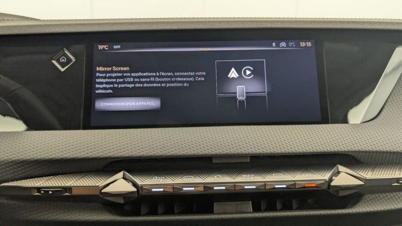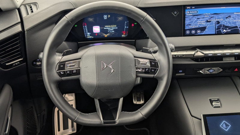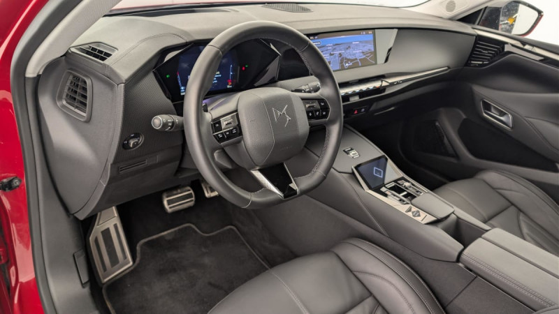 Frein de stationnement électrique automatique / Contrôle de traction intelligent / Pack Auto Confort : Climatisation automatique bi-zone Essuie-vitre AV à déclenchement et cadencement automatiques Allumage automatique des projecteurs / Eclairage d'accueil automatique / Lève-vitres AV/AR électriques, séquentiels et antipincement / Ouverture et fermeture des vitres à distance / Prise USB Data à l'AV / Pack Sécurité Etendue : Alerte Active de Franchissement Involontaire de Ligne (AAFIL) Alerte Attention Conducteur par caméra Reconnaissance étendue des panneaux de circulation Freinage d'urgence automatique piloté par caméra et radar avec Pack Sécurité Etendue, DS DRIVE ASSIST et Pack Détection Trafic Arrière / Rétroviseur intérieur électrochrome sans cadre / Pédalier et le repose-pied aluminium / Climatisation avec aérateurs aux places AR / Fixations ISOFIX à la place passager AV et aux places latérales AR / Pare-brise teinté et acoustique / Verrouillage automatique des portes en roulant / Airbags frontaux aux places AV avec désactivation par clé de l'airbag passager / Contrôle dynamique de stabilité (ESP) avec antipatinage des roues (ASR) / ADML PROXIMITY Accès et démarrage Mains-Libres ave déverrouillage et déploiement automatique des poignées de portes affleurantes à l'approche du véhicule / DS MATRIX LED VISION / Détection de sous-gonflage / Commutation automatique des feux de route / Eclairage d'accompagnement / Airbags latéraux de type "thorax" aux places AV / Banquette AR 2/3 - 1/3 avec 3 appuie-tête / ABS avec répartiteur électronique de freinage (REF) et Aide au Freinage d'Urgence (AFU) / Kit de dépannage provisoire / Barres de toit Noires brillantes / Vitres AR surteintées avec Reflective Design / Eclairage PolyAmbient / Aide au stationnement AV/AR avec Caméra de recul / Clean Cabin avec Air Quality System / DS EXTENDED HEAD UP DISPLAY / DS IRIS SYSTEM / DS SMART TOUCH / SOS / Airbag central entre les places AV / Feux AR 3D (traitement écailles) avec indicateur défilant à LED / Console centrale avec compartiment rangement fermé / Console centrale avec 2 porte-gobelets / Combiné numérique 7" / Système audio Analogique à 6 HP avec Bluetooth / Intérieur Cuir Noir Basalte : Surtapis AV/AR Seuils de portes en métal avec Trame DS Plip avec insert Chromé Sièges AV à haute densité Volant Cuir gainé avec insert Noir Brillant Guillochage "Clous de Paris" Platine Sellerie en Cuir grainé Noir Basalte Décor Noir Basalte façon écaille / Freinage d'urgence automatique piloté par caméra et radar avec Pack Sécurité Etendue, DS DRIVE ASSIST et Pack Détection Trafic Arrière / DS e-toggle (Sélecteur de vitesses) / Système Infotainment écran 10" tactile avec Mirror Screen sans fil / Pack Détection Trafic AR : Surveillance d'angles morts longue distance Alerte de Trafic AR / Pack DS DRIVE ASSIST : Adaptive Cruise Control Stop & Go Lane Positioning Assist / Sièges AV avec réglage lombaires /