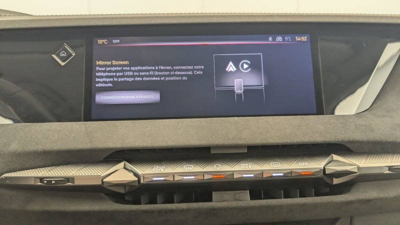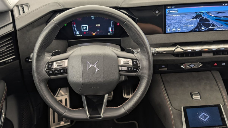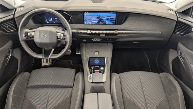 Kit de dépannage provisoire de pneumatiques / Frein de stationnement électrique automatique / Lève-vitres AV/AR électriques, séquentiels et antipincement / Rétroviseur intérieur électrochrome sans cadre / Alerte Attention Conducteur / Fixations ISOFIX à la place passager AV et aux places latérales AR / DS MATRIX LED VISION / Détection de sous-gonflage / Eclairage de boîte à gants, d'accoudoir central AV et de coffre à LED / Banquette AR 2/3 - 1/3 avec 3 appuie-tête / Aide au stationnement AV/AR avec Caméra de recul / DS EXTENDED HEAD UP DISPLAY / DS IRIS SYSTEM / Avertisseur de risque de collision / Combiné numérique 7" / Jantes alliage 19" MINNEAPOLIS / Freinage d'urgence automatique piloté par caméra et radar / ABS avec répartiteur électronique de freinage (REF) et Aide au Freinage d'Urgence (AFU) + Aide au démarrage en pente / Pare-brise teinté acoustique / Eclairage de cave à pieds à LED / Eclairage d'ambiance à LED / Mirror Screen sans fil via Wifi Compatible Apple CarPlay et Android Auto / Essuie-vitre AV à déclenchement et cadencement automatiques + Buses de lavage / Accès et démarrage mains libres Proximity / Adaptive Cruise Control Stop&Go / Airbags frontaux (passager déconnectable), latéraux AV, rideaux aux places AV/AR et central entre les places AV / Contrôle dynamique de stabilité (ESP) avec antipatinage des roues (ASR) + Contrôle de stabilité de l'attelage / Feux AR Full LED effet 3D avec traitement écailles / Pack Style : Pédalier en aluminium Vitres AR et lunette AR surteintées / Pare-soleil avec miroirs de courtoisie occultables éclairés à LED / Radio numérique terrestre (DAB) Inclut le Bluetooth / Rétroviseurs extérieurs électriques, dégivrants, rabattables électriquement Avec éclairage d'accueil / Ecran tactile capacitif 10" HD / Intérieur Tissu Tressé Basalte avec Alcantara : Planche de bord en alcantara Panneaux de portes en alcantara Console centrale en alcantara Sellerie en Tissu Tressé Basalte avec Alcantara et toile DS Décors de panneaux de porte Chrome guilloché Volant en cuir fleur Mistral avec surpiqûres Ciel de pavillon Salin /