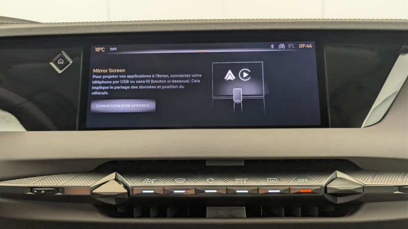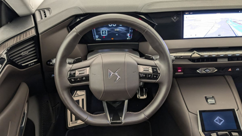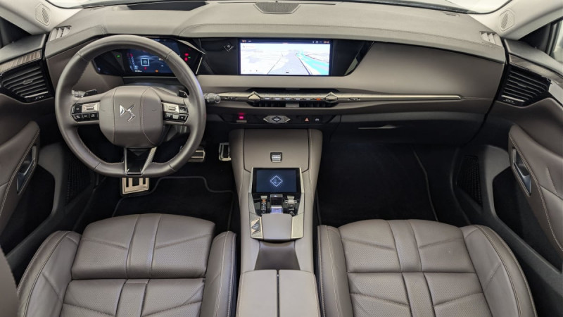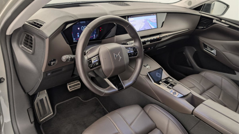 Kit de dépannage provisoire de pneumatiques / Pédalier en aluminium / Frein de stationnement électrique automatique / Lève-vitres AV/AR électriques, séquentiels et antipincement / Rétroviseur intérieur électrochrome sans cadre / Fixations ISOFIX à la place passager AV et aux places latérales AR / DS MATRIX LED VISION / Détection de sous-gonflage / Eclairage de boîte à gants, d'accoudoir central AV et de coffre à LED / Banquette AR 2/3 - 1/3 avec 3 appuie-tête / SOS / Pack Sièges Electriques avec sièges AV chauffants, massants et ventilés : Sièges AV avec réglages lombaires électriques Sièges AV chauffants Sièges AV massants et ventilés Siège conducteur avec nez de coussin réglable Siège conducteur électrique à 10 voies à mémorisation de position Siège passager AV électrique à 6 voies Accoudoir central AR avec trappe à ski et 2 porte-gobelets Appuie-têtes à 4 voies Volant chauffant / DS EXTENDED HEAD UP DISPLAY / DS IRIS SYSTEM / Combiné numérique 7" / DS e-toggle (Sélecteur de vitesses) / Freinage d'urgence automatique piloté par caméra et radar / ABS avec répartiteur électronique de freinage (REF) et Aide au Freinage d'Urgence (AFU) + Aide au démarrage en pente / Pare-brise teinté acoustique / Aide au stationnement AV/AR et 360 Vision / Hayon motorisé avec accès bras chargés / Vitres latérales feuilletées acoustiques / Eclairage de cave à pieds à LED / Eclairage d'ambiance à LED / Mirror Screen sans fil via Wifi Compatible Apple CarPlay et Android Auto / Essuie-vitre AV à déclenchement et cadencement automatiques + Buses de lavage / Accès et démarrage mains libres Proximity / Chargeur sans fil pour smartphone / Airbags frontaux (passager déconnectable), latéraux AV, rideaux aux places AV/AR et central entre les places AV / Console centrale avec rangement fermé / Contrôle dynamique de stabilité (ESP) avec antipatinage des roues (ASR) + Contrôle de stabilité de l'attelage / Feux AR Full LED effet 3D avec traitement écailles / DS Drive Assist et Pack Détection Trafic AR : Lane Positioning Assist Surveillance d'angles morts longue distance Alerte de Trafic AR Freinage d'urgence automatique piloté par caméra et radar Adaptive Cruise Control Stop&Go / Pare-soleil avec miroirs de courtoisie occultables éclairés à LED / Radio numérique terrestre (DAB) Inclut le Bluetooth / Rétroviseurs extérieurs électriques, dégivrants, rabattables électriquement Avec éclairage d'accueil / Toit ouvrant électrique Entrebaillant, ouvrant, occulteur manuel / Ecran tactile capacitif 10" HD / Sellerie en Cuir Nappa Brun Criollo confection Bracelet /