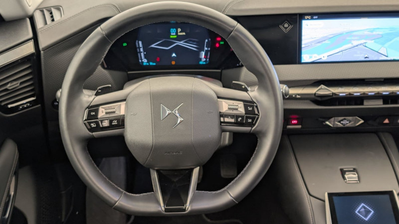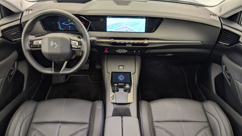 Kit de dépannage provisoire de pneumatiques / Frein de stationnement électrique automatique / Lève-vitres AV/AR électriques, séquentiels et antipincement / Freinage multi-collision / Rétroviseur intérieur électrochrome sans cadre / Alerte Attention Conducteur / Fixations ISOFIX à la place passager AV et aux places latérales AR / Vérins d'ouverture et de maintien du capot moteur / DS MATRIX LED VISION / Détection de sous-gonflage / Eclairage de boîte à gants, d'accoudoir central AV et de coffre à LED / Banquette AR 2/3 - 1/3 avec 3 appuie-tête / SOS / Banquette AR avec trappe à skis / DS IRIS SYSTEM / Avertisseur de risque de collision / Combiné numérique 7" / DS e-toggle (Sélecteur de vitesses) / Enjoliveurs supérieurs des vitres latérales chromés / Freinage d'urgence automatique piloté par caméra et radar / ABS avec répartiteur électronique de freinage (REF) et Aide au Freinage d'Urgence (AFU) + Aide au démarrage en pente / Grille de calandre noir brillant avec pampilles chromées / Eclairage de cave à pieds à LED / Eclairage d'ambiance à LED / Mirror Screen sans fil via Wifi Compatible Apple CarPlay et Android Auto / Essuie-vitre AV à déclenchement et cadencement automatiques / Accès et démarrage mains libres Proximity / Aide au stationnement AV et AR et Caméra de recul / Accoudoir central AR avec trappe à ski et 2 porte-gobelets / Airbags frontaux (passager déconnectable), latéraux AV, rideaux aux places AV/AR et central entre les places AV / Antenne "aileron de requin" / Contrôle dynamique de stabilité (ESP) avec antipatinage des roues (ASR) + Contrôle de stabilité de l'attelage / Diffuseur AR noir brillant avec décors d'échappement chromé / Feux AR Full LED effet 3D avec traitement écailles / Jonc de volet chromé / Pare-soleil avec miroirs de courtoisie occultables éclairés à LED / Prises 12 V 1 prise AV et 1 prise dans le coffre / Prises USB 1 prise USB-C sous l'accoudoir central AV, 1 prise USB-C dans la console et 2 prises USB-C pour les passagers AR / Radio numérique terrestre (DAB) Inclut le Bluetooth / Rétroviseurs extérieurs électriques, dégivrants, rabattables électriquement Avec éclairage d'accueil / Poignées extérieures affleurantes chromées / Ecran tactile capacitif 10" HD / Clean Cabin avec Air Quality System / DS Drive Assist et Pack Détection Trafic AR : Surveillance d'angles morts longue distance Alerte de Trafic AR / DS EXTENDED HEAD UP DISPLAY Affichage tete haute étendu / Intérieur Cuir grainé Noir Basalte et Toile DS : Ciel de pavillon clair Décors de panneaux de porte Chrome guilloché Volant en cuir fleur Mistral Console centrale en Toile DS Mistral Planche de bord en toile DS Noir Basalte façon écaille Panneaux de portes en toile DS Noir Basalte façon écaille Sellerie en Cuir grainé Noir Basalte et Toile DS / Plafonnier I-Dome /