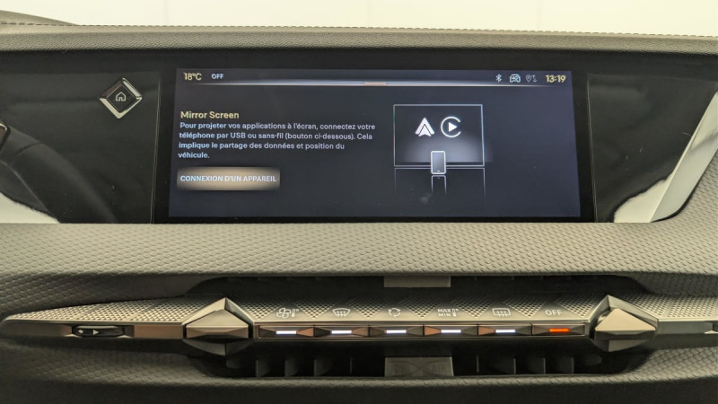 Kit de dépannage provisoire de pneumatiques / Frein de stationnement électrique automatique / Lève-vitres AV/AR électriques, séquentiels et antipincement / Fixations ISOFIX à la place passager AV et aux places latérales AR / DS MATRIX LED VISION / Détection de sous-gonflage / Eclairage de boîte à gants, d'accoudoir central AV et de coffre à LED / Banquette AR 2/3 - 1/3 avec 3 appuie-tête / SOS / DS IRIS SYSTEM / Combiné numérique 7" / DS e-toggle (Sélecteur de vitesses) / Freinage d'urgence automatique piloté par caméra et radar / ABS avec répartiteur électronique de freinage (REF) et Aide au Freinage d'Urgence (AFU) + Aide au démarrage en pente / Pare-brise teinté acoustique / Eclairage de cave à pieds à LED / Eclairage d'ambiance à LED / Mirror Screen sans fil via Wifi Compatible Apple CarPlay et Android Auto / Essuie-vitre AV à déclenchement et cadencement automatiques + Buses de lavage / Accès et démarrage mains libres Proximity / Aide au stationnement AV et AR et Caméra de recul / Airbags frontaux (passager déconnectable), latéraux AV, rideaux aux places AV/AR et central entre les places AV / Contrôle dynamique de stabilité (ESP) avec antipatinage des roues (ASR) + Contrôle de stabilité de l'attelage / Feux AR Full LED effet 3D avec traitement écailles / Pare-soleil avec miroirs de courtoisie occultables éclairés à LED / Radio numérique terrestre (DAB) Inclut le Bluetooth / Rétroviseurs extérieurs électriques, dégivrants, rabattables électriquement Avec éclairage d'accueil / Ecran tactile capacitif 10" HD / Clean Cabin avec Air Quality System / DS Drive Assist et Pack Détection Trafic AR : Surveillance d'angles morts longue distance Alerte de Trafic AR Adaptive Cruise Control Stop & Go / DS EXTENDED HEAD UP DISPLAY Affichage tete haute étendu / Intérieur Cuir grainé Noir Basalte et Toile DS : Ciel de pavillon clair Décors de panneaux de porte Chrome guilloché Volant en cuir fleur Mistral Console centrale en Toile DS Mistral Planche de bord en toile DS Noir Basalte façon écaille Panneaux de portes en toile DS Noir Basalte façon écaille Sellerie en Cuir grainé Noir Basalte et Toile DS / Pack Sièges mécaniques avec réglages lombaires conducteur et passager /