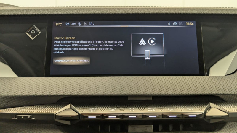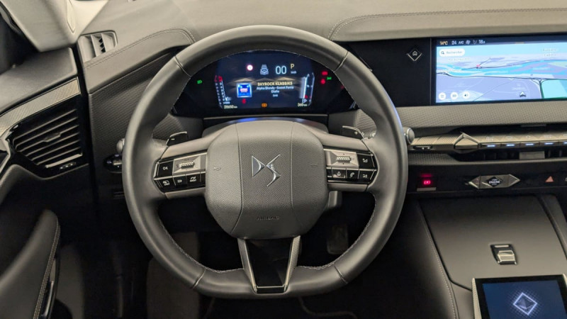 Kit de dépannage provisoire de pneumatiques / Frein de stationnement électrique automatique / Lève-vitres AV/AR électriques, séquentiels et antipincement / Rétroviseur intérieur électrochrome sans cadre / Fixations ISOFIX à la place passager AV et aux places latérales AR / DS MATRIX LED VISION / Détection de sous-gonflage / Eclairage de boîte à gants, d'accoudoir central AV et de coffre à LED / Banquette AR 2/3 - 1/3 avec 3 appuie-tête / SOS / DS IRIS SYSTEM / Avertisseur de risque de collision / Combiné numérique 7" / DS e-toggle (Sélecteur de vitesses) / Freinage d'urgence automatique piloté par caméra et radar / ABS avec répartiteur électronique de freinage (REF) et Aide au Freinage d'Urgence (AFU) + Aide au démarrage en pente / Pare-brise teinté acoustique / Eclairage de cave à pieds à LED / Eclairage d'ambiance à LED / Mirror Screen sans fil via Wifi Compatible Apple CarPlay et Android Auto / Essuie-vitre AV à déclenchement et cadencement automatiques + Buses de lavage / Accès et démarrage mains libres Proximity / Aide au stationnement AV et AR et Caméra de recul / Airbags frontaux (passager déconnectable), latéraux AV, rideaux aux places AV/AR et central entre les places AV / Antenne "aileron de requin" / Console centrale avec rangement fermé / Contrôle dynamique de stabilité (ESP) avec antipatinage des roues (ASR) + Contrôle de stabilité de l'attelage / Feux AR Full LED effet 3D avec traitement écailles / Pare-soleil avec miroirs de courtoisie occultables éclairés à LED / Radio numérique terrestre (DAB) Inclut le Bluetooth / Rétroviseurs extérieurs électriques, dégivrants, rabattables électriquement Avec éclairage d'accueil / Ecran tactile capacitif 10" HD / DS Drive Assist et Pack Détection Trafic AR : Surveillance d'angles morts longue distance Alerte de Trafic AR / DS EXTENDED HEAD UP DISPLAY Affichage tete haute étendu / Intérieur Cuir grainé Noir Basalte et Toile DS : Ciel de pavillon clair Décors de panneaux de porte Chrome guilloché Volant en cuir fleur Mistral Console centrale en Toile DS Mistral Planche de bord en toile DS Noir Basalte façon écaille Panneaux de portes en toile DS Noir Basalte façon écaille Sellerie en Cuir grainé Noir Basalte et Toile DS / Pack Sièges mécaniques avec réglages lombaires conducteur et passager /