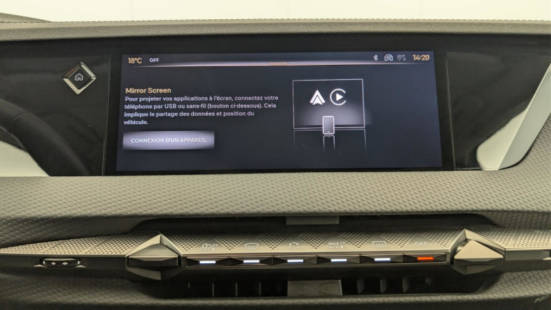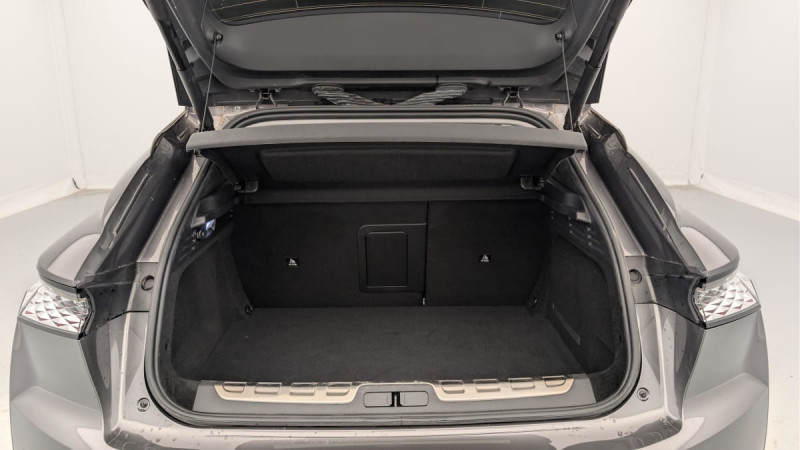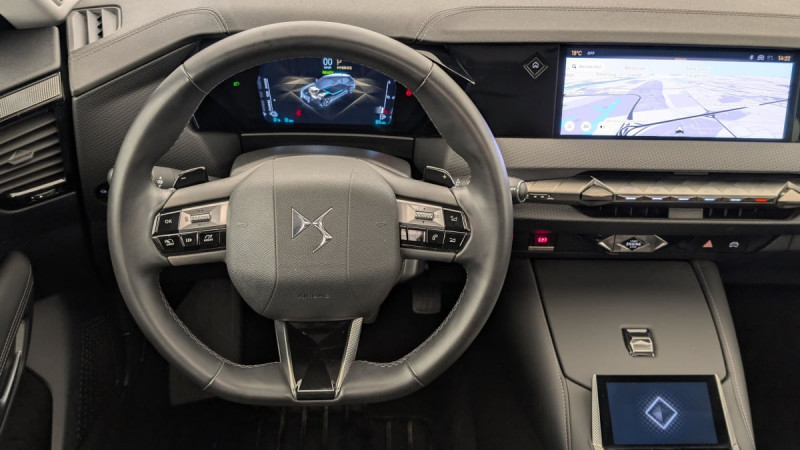 Kit de dépannage provisoire de pneumatiques / Frein de stationnement électrique automatique / Lève-vitres AV/AR électriques, séquentiels et antipincement / Rétroviseur intérieur électrochrome sans cadre / Fixations ISOFIX à la place passager AV et aux places latérales AR / DS MATRIX LED VISION / Détection de sous-gonflage / Eclairage de boîte à gants, d'accoudoir central AV et de coffre à LED / Banquette AR 2/3 - 1/3 avec 3 appuie-tête / Chargeur embarqué monophasé de 7,4 kW / DS EXTENDED HEAD UP DISPLAY / DS IRIS SYSTEM / Combiné numérique 7" / DS e-toggle (Sélecteur de vitesses) / Freinage d'urgence automatique piloté par caméra et radar / ABS avec répartiteur électronique de freinage (REF) et Aide au Freinage d'Urgence (AFU) + Aide au démarrage en pente / Pare-brise teinté acoustique / Eclairage de cave à pieds à LED / Eclairage d'ambiance à LED / Mirror Screen sans fil via Wifi Compatible Apple CarPlay et Android Auto / Essuie-vitre AV à déclenchement et cadencement automatiques + Buses de lavage / Accès et démarrage mains libres Proximity / Airbags frontaux (passager déconnectable), latéraux AV, rideaux aux places AV/AR et central entre les places AV / Contrôle dynamique de stabilité (ESP) avec antipatinage des roues (ASR) + Contrôle de stabilité de l'attelage / Câble de recharge mode 2 standard 1,8 kW (10 A) / Feux AR Full LED effet 3D avec traitement écailles / DS Drive Assist et Pack Détection Trafic AR : Surveillance d'angles morts longue distance Alerte de Trafic AR / Radio numérique terrestre (DAB) Inclut le Bluetooth / Rétroviseurs extérieurs électriques, dégivrants, rabattables électriquement Avec éclairage d'accueil / Ecran tactile capacitif 10" HD / Intérieur Cuir grainé Noir Basalte : Sellerie en Cuir grainé Noir Basalte Décors de panneaux de porte Chrome guilloché Volant en cuir fleur Mistral Console centrale en Toile DS Mistral Planche de bord en toile DS Noir Basalte façon écaille Panneaux de portes en toile DS Noir Basalte façon écaille Ciel de pavillon Salin / Clean Cabin avec Air Quality System /
