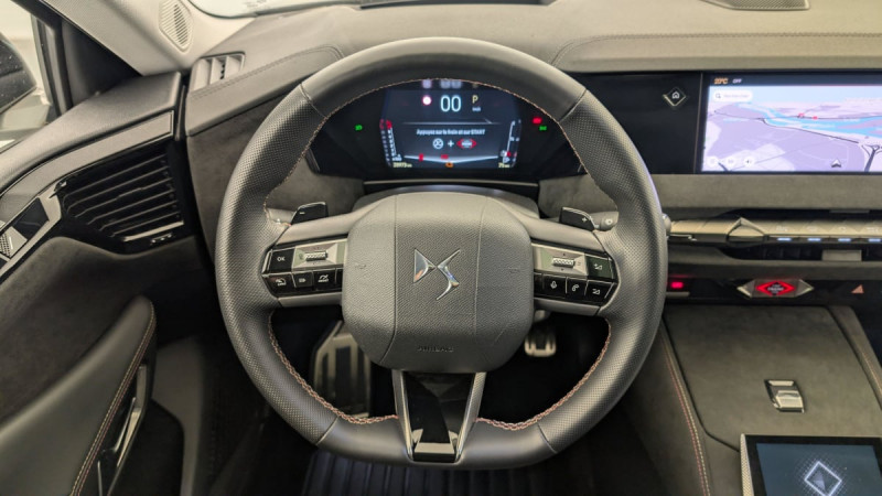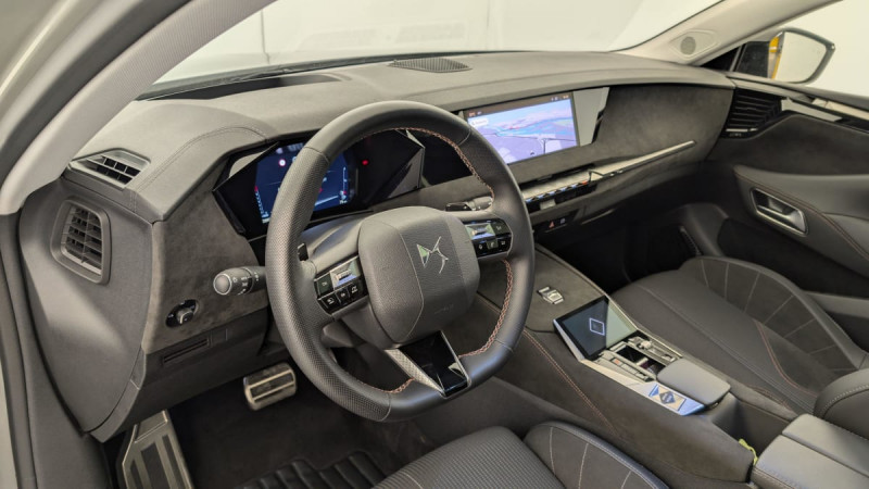 Kit de dépannage provisoire de pneumatiques / Frein de stationnement électrique automatique / Lève-vitres AV/AR électriques, séquentiels et antipincement / Rétroviseur intérieur électrochrome sans cadre / Alerte Attention Conducteur / Fixations ISOFIX à la place passager AV et aux places latérales AR / DS MATRIX LED VISION / Détection de sous-gonflage / Eclairage de boîte à gants, d'accoudoir central AV et de coffre à LED / Banquette AR 2/3 - 1/3 avec 3 appuie-tête / Aide au stationnement AV/AR avec Caméra de recul / DS EXTENDED HEAD UP DISPLAY / DS IRIS SYSTEM / Avertisseur de risque de collision / Combiné numérique 7" / Jantes alliage 19" MINNEAPOLIS / Freinage d'urgence automatique piloté par caméra et radar / ABS avec répartiteur électronique de freinage (REF) et Aide au Freinage d'Urgence (AFU) + Aide au démarrage en pente / Pare-brise teinté acoustique / Eclairage de cave à pieds à LED / Eclairage d'ambiance à LED / Mirror Screen sans fil via Wifi Compatible Apple CarPlay et Android Auto / Essuie-vitre AV à déclenchement et cadencement automatiques + Buses de lavage / Accès et démarrage mains libres Proximity / Adaptive Cruise Control Stop&Go / Airbags frontaux (passager déconnectable), latéraux AV, rideaux aux places AV/AR et central entre les places AV / Contrôle dynamique de stabilité (ESP) avec antipatinage des roues (ASR) + Contrôle de stabilité de l'attelage / Feux AR Full LED effet 3D avec traitement écailles / Pack Style : Pédalier en aluminium Vitres AR et lunette AR surteintées / Pare-soleil avec miroirs de courtoisie occultables éclairés à LED / Radio numérique terrestre (DAB) Inclut le Bluetooth / Rétroviseurs extérieurs électriques, dégivrants, rabattables électriquement Avec éclairage d'accueil / Ecran tactile capacitif 10" HD / Intérieur Tissu Tressé Basalte avec Alcantara : Planche de bord en alcantara Panneaux de portes en alcantara Console centrale en alcantara Sellerie en Tissu Tressé Basalte avec Alcantara et toile DS Décors de panneaux de porte Chrome guilloché Volant en cuir fleur Mistral avec surpiqûres Ciel de pavillon Salin /